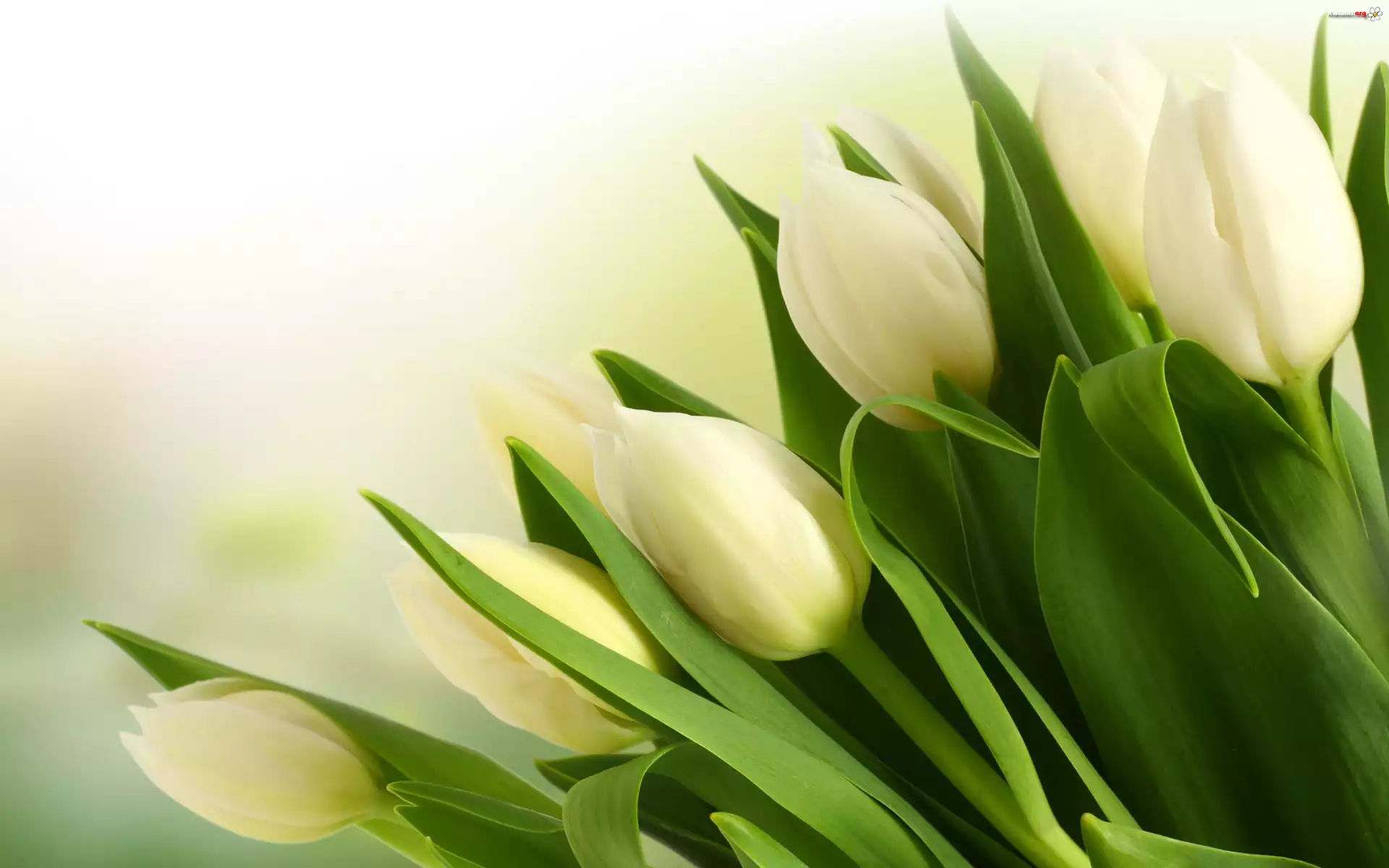 Bukiet, Białych, Tulipanów - Zdjęcia