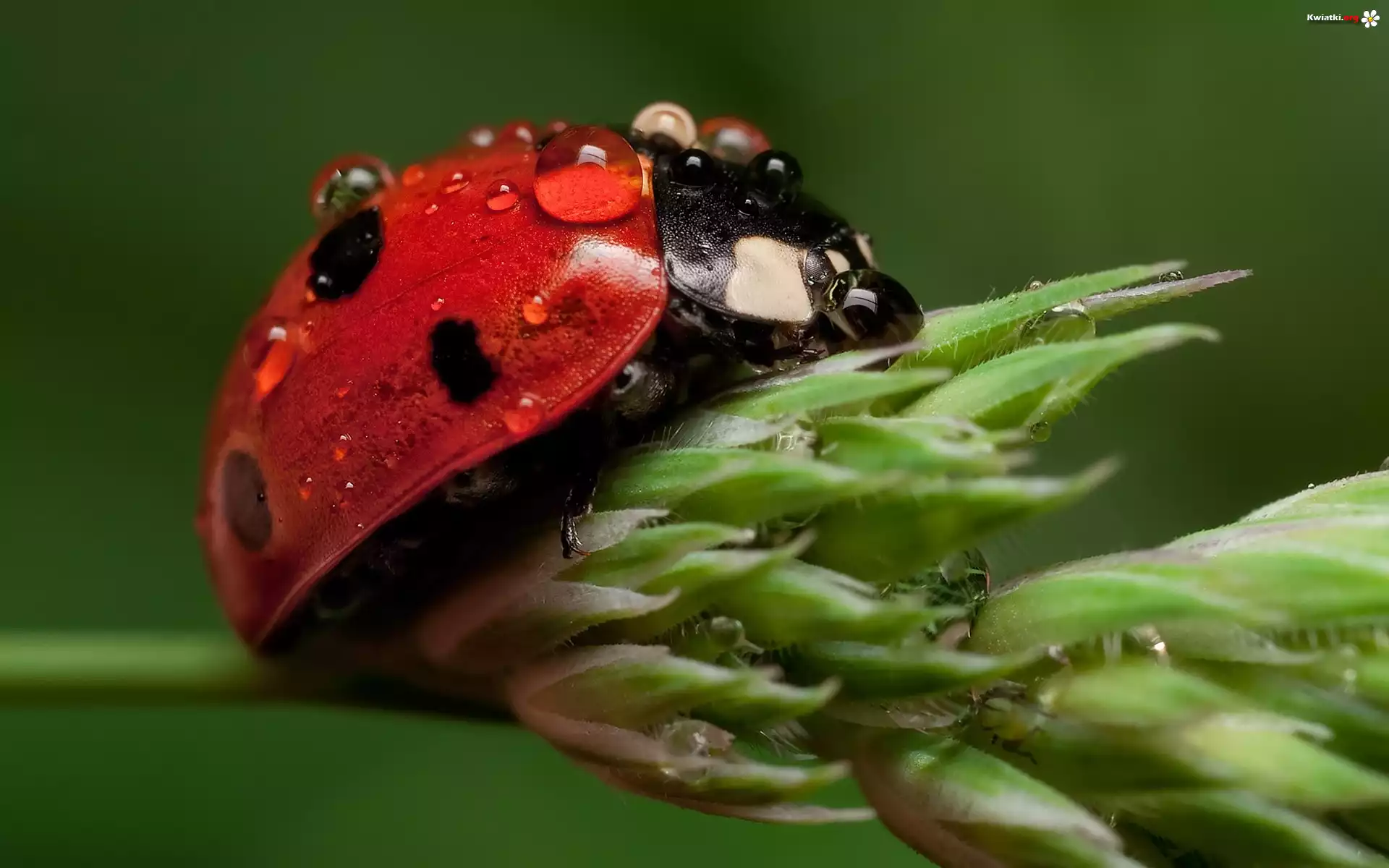 Biedronka, Krople, Wody, Kwiatek - Zdjęcia