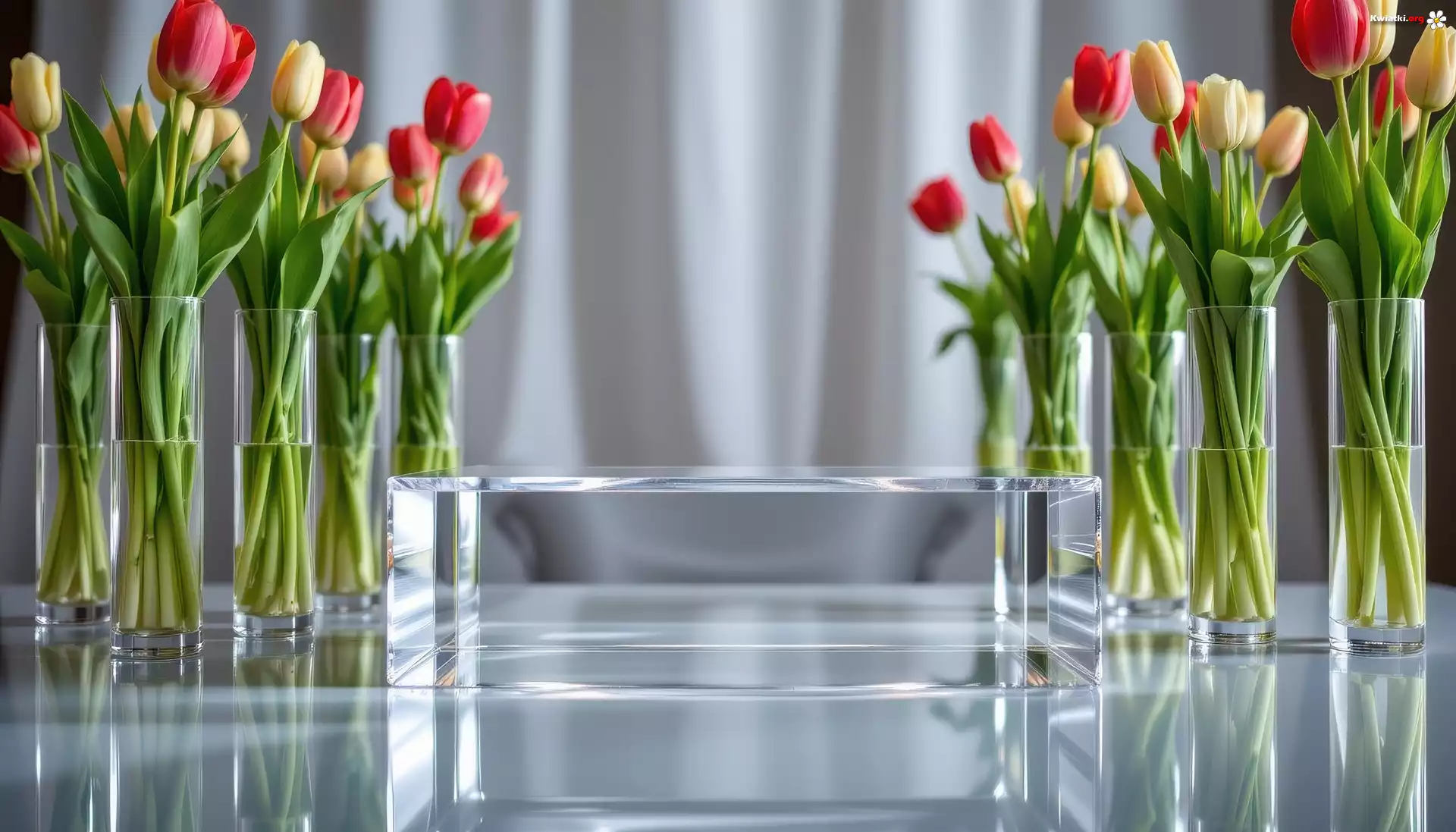 Kwiat Tulipany, Szklane, Wazony, Blat, Odbicie, Grafika AI