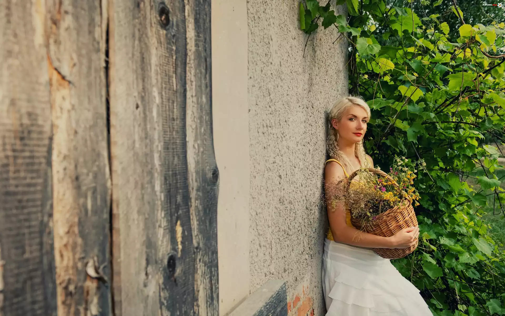 Blondynka, Dom, Kosz, Polnych, Kwiatów - Zdjęcia