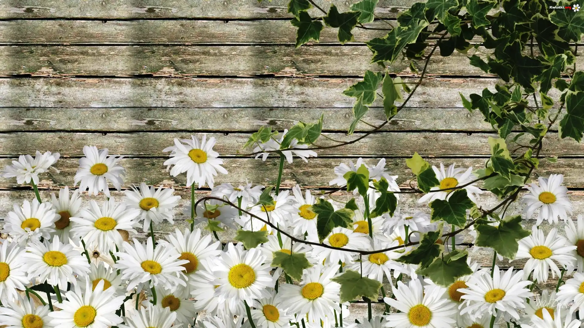 Margerytki, Bluszcz, Deski - Zdjęcia
