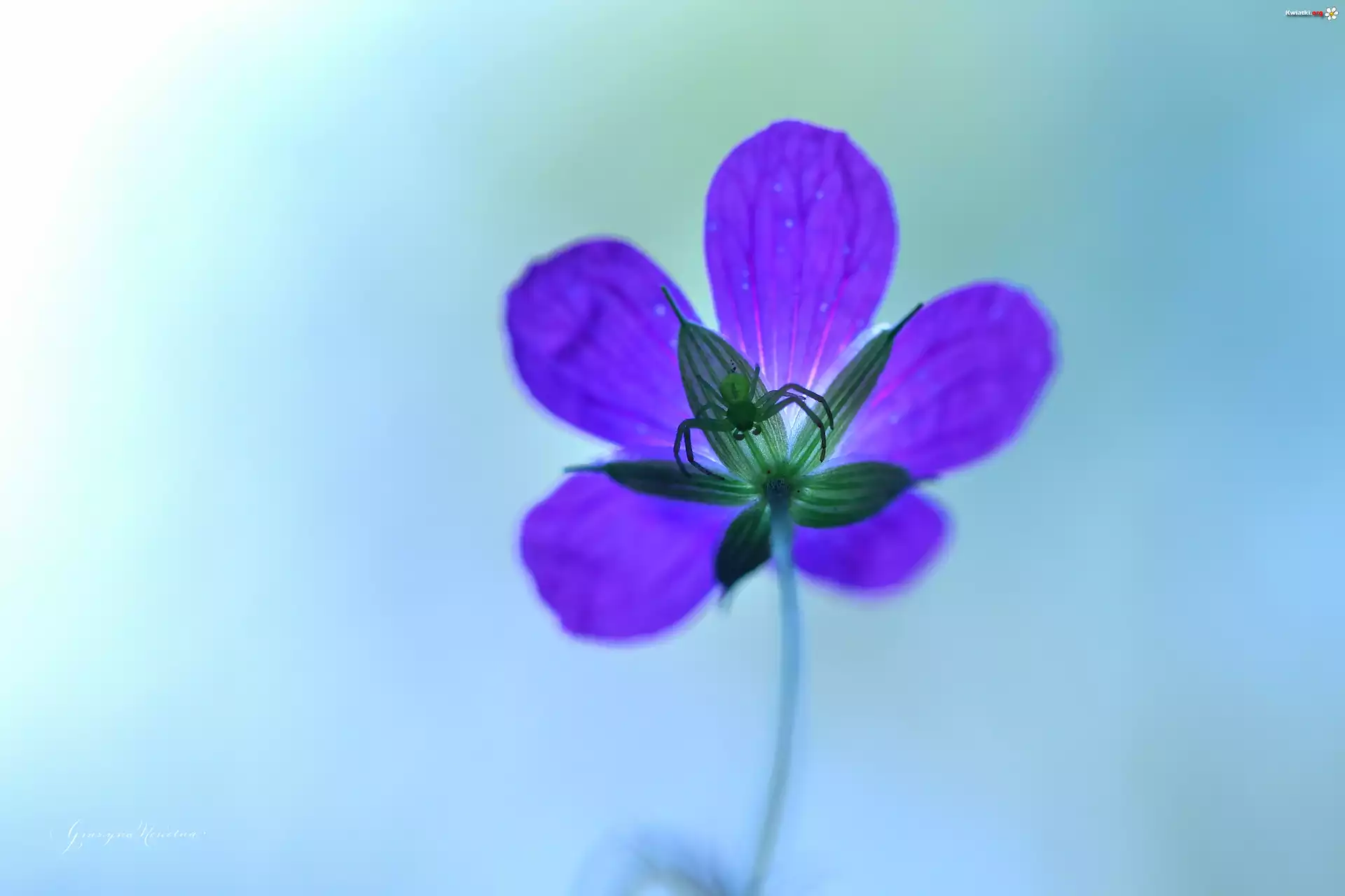 Kwiat Bodziszek, Fioletowy, Kwiat, Pająk