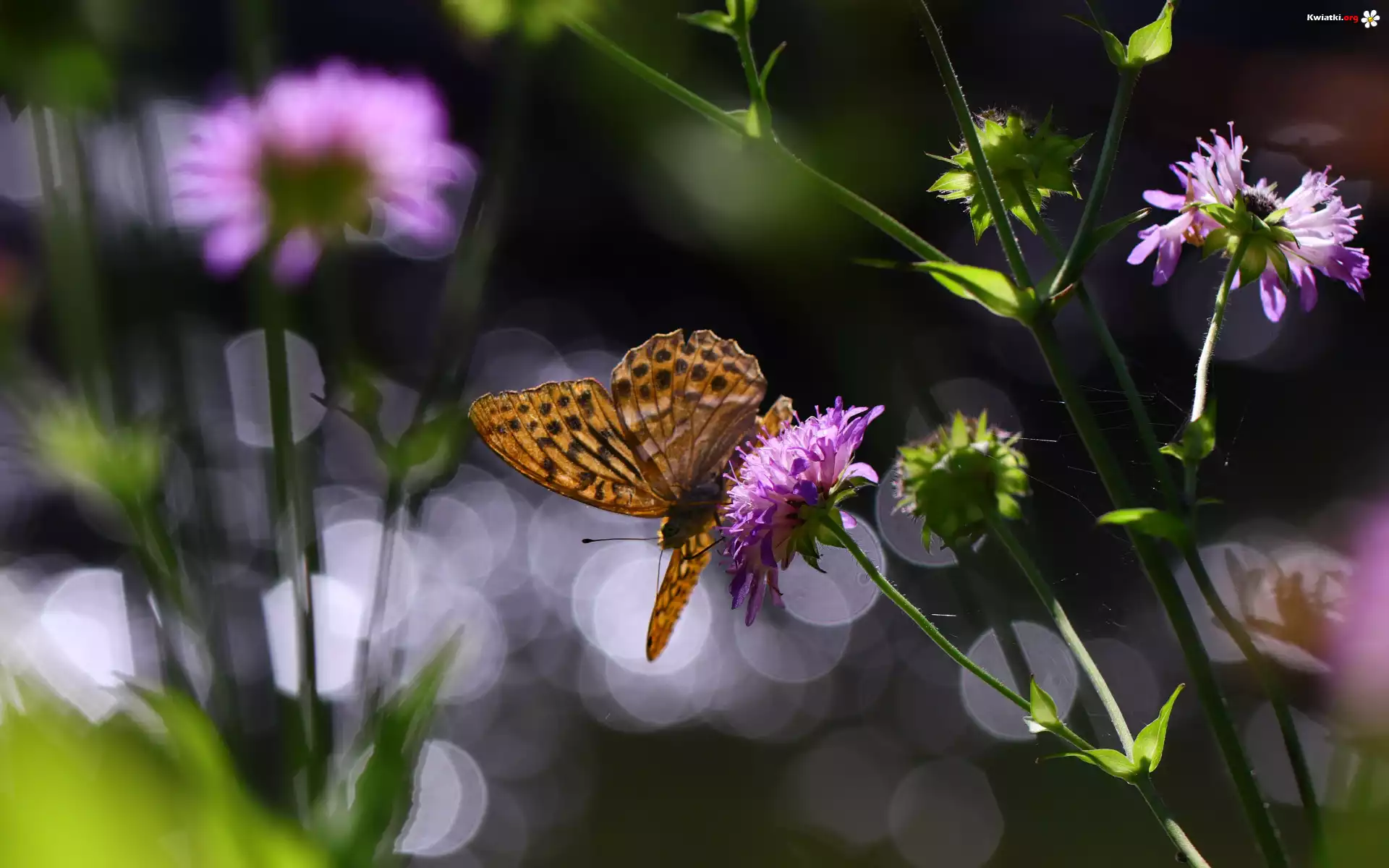 Lato, Kwiaty, Motyl, Bokeh - Zdjęcia