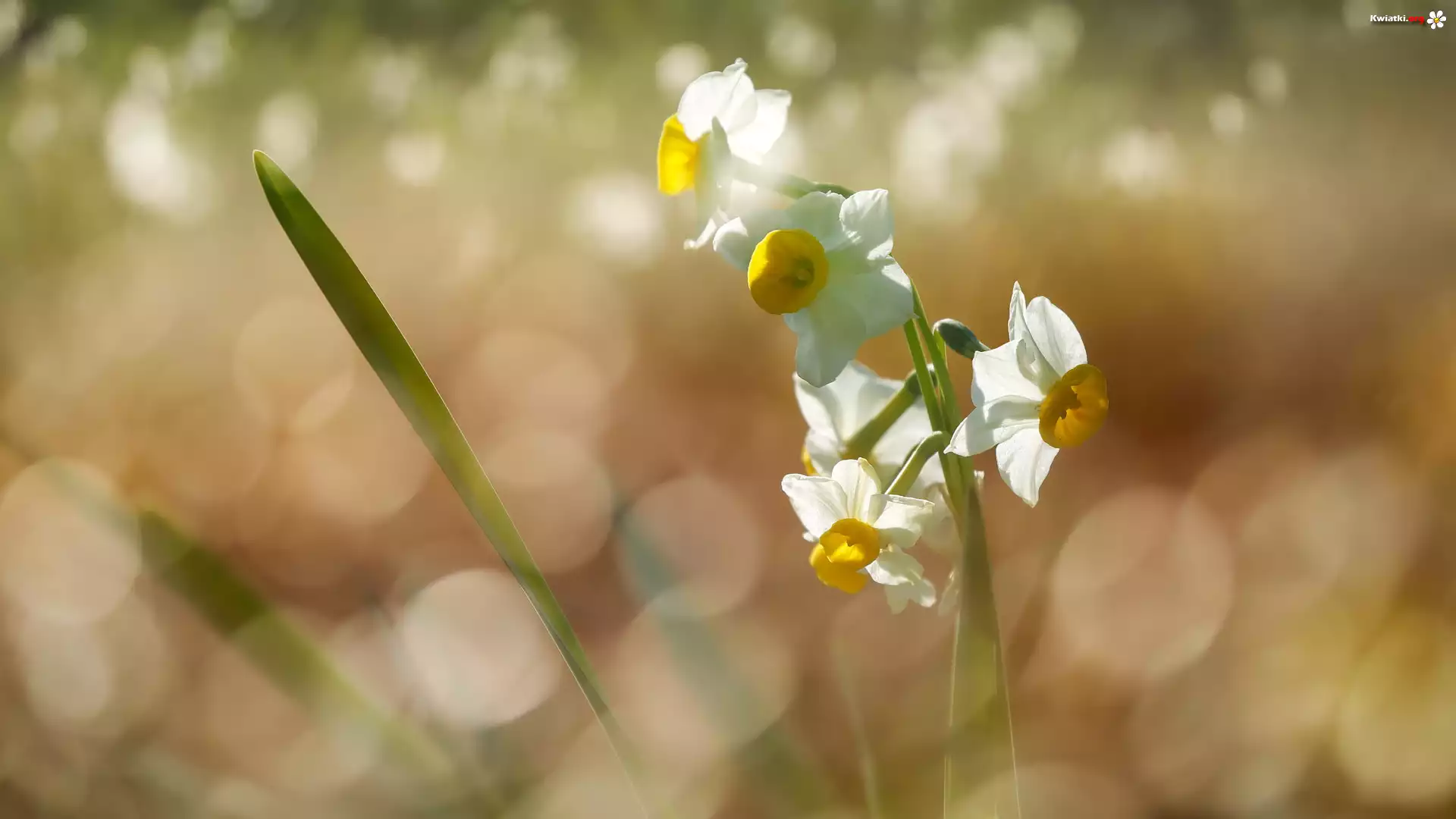 Narcyzy wielokwiatowe, Listki, Bokeh - Zdjęcia