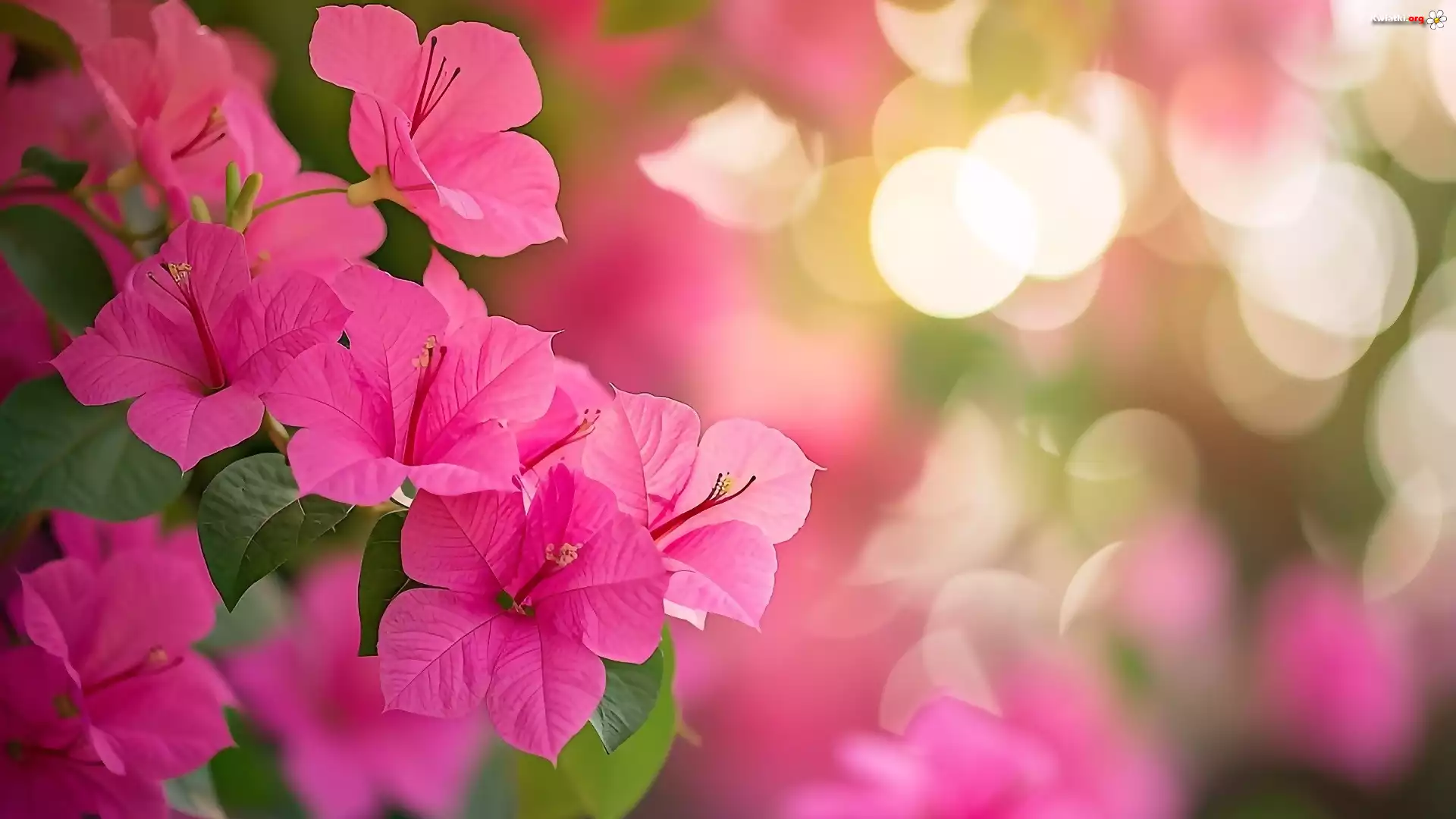 Różowe, Kwiaty, Listki, Bokeh - Zdjęcia