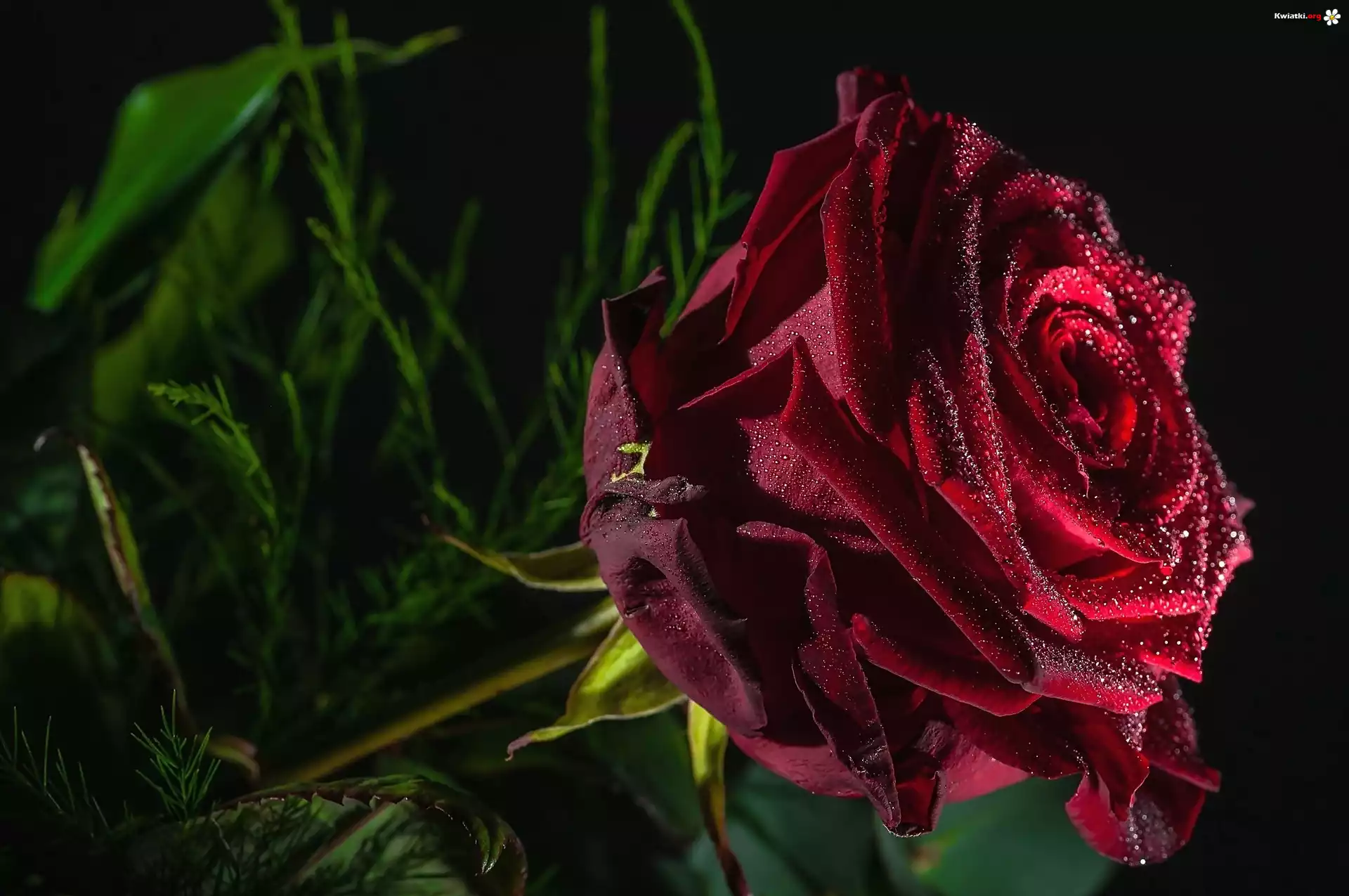 Kwiat Bordowa, Róża, Krople, Rosy