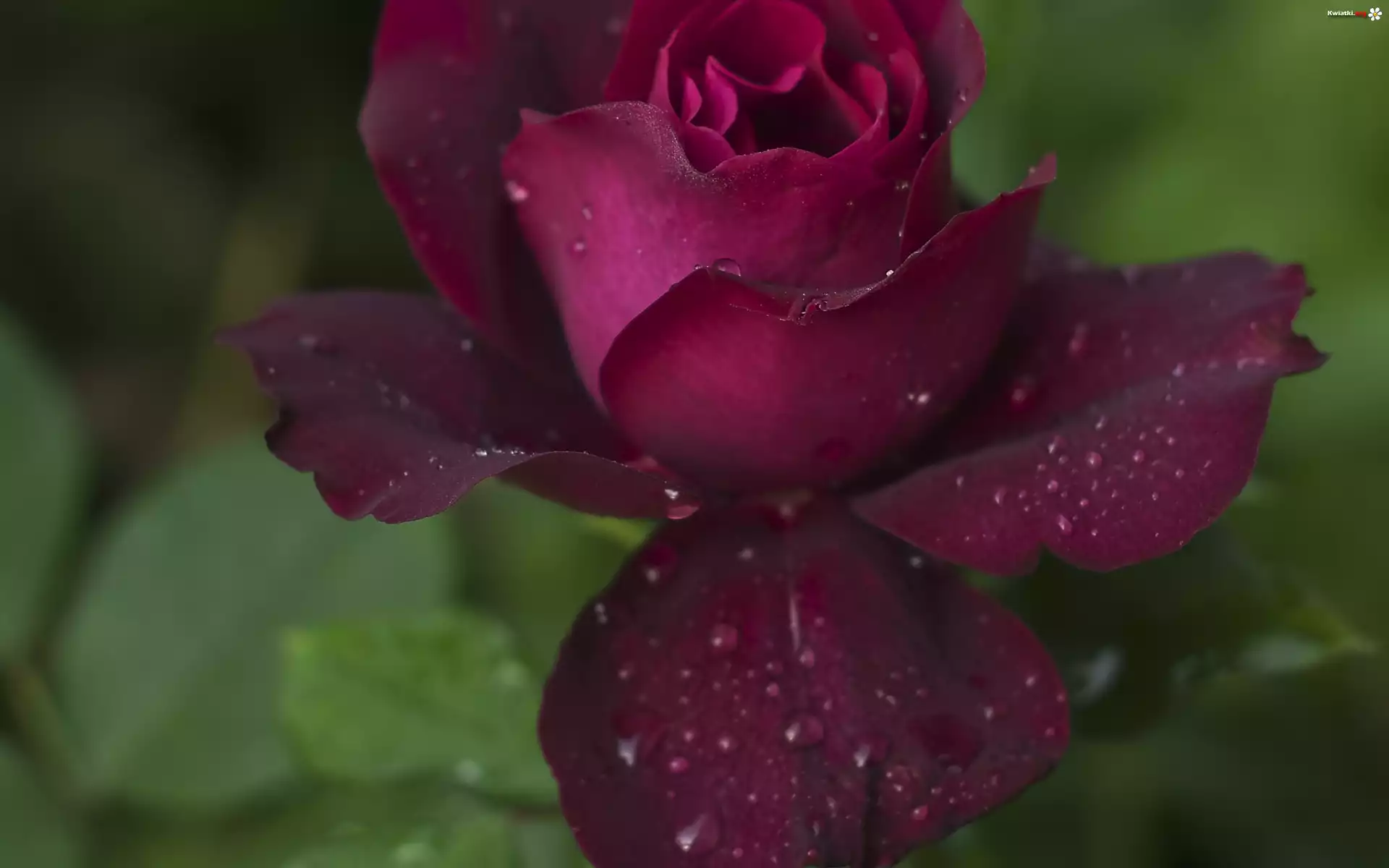 Kwiat Bordowa, Róża, Krople, Rosy