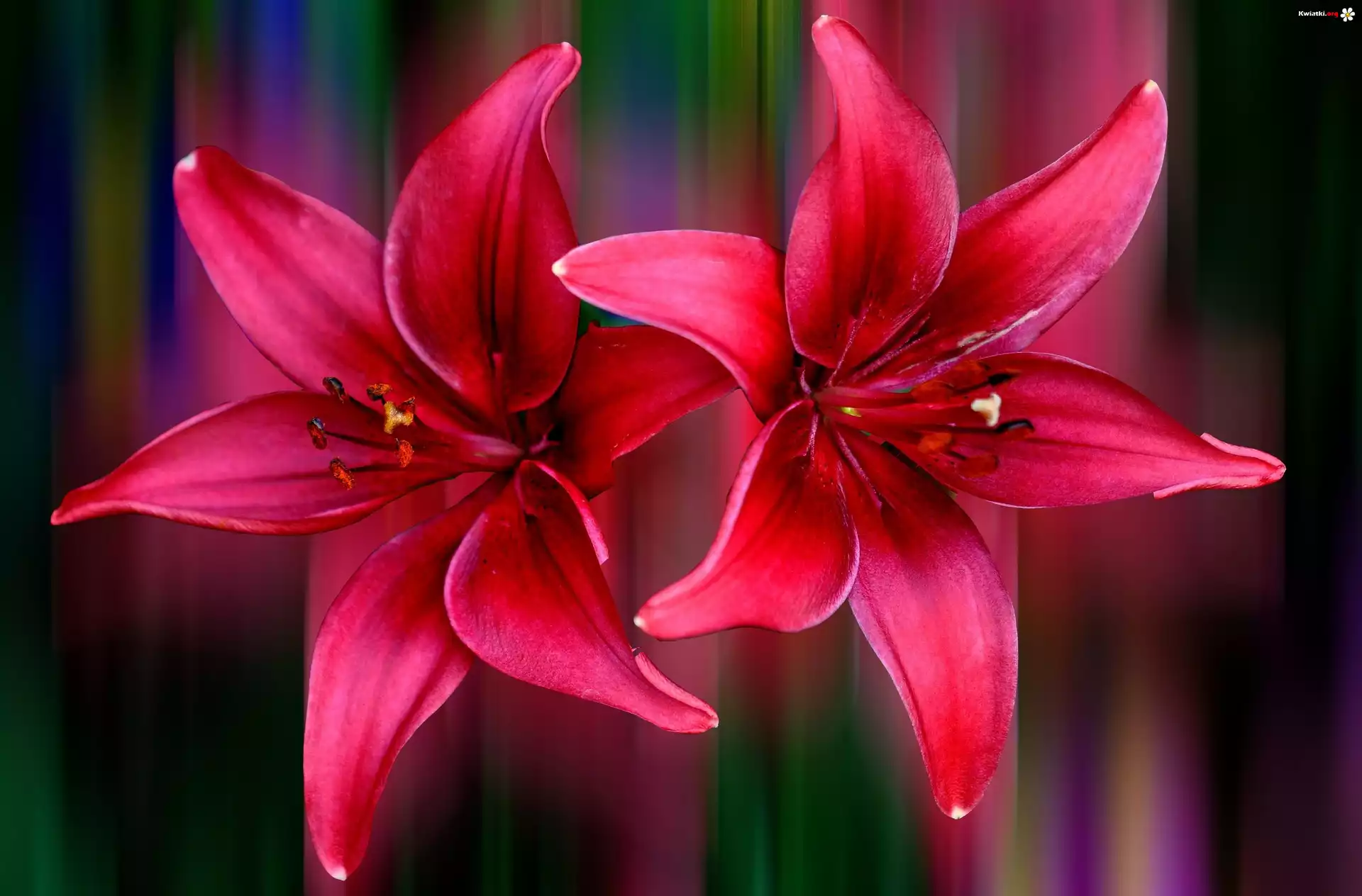 Bordowe, Lilie, Tęczowe, Tło - Zdjęcia