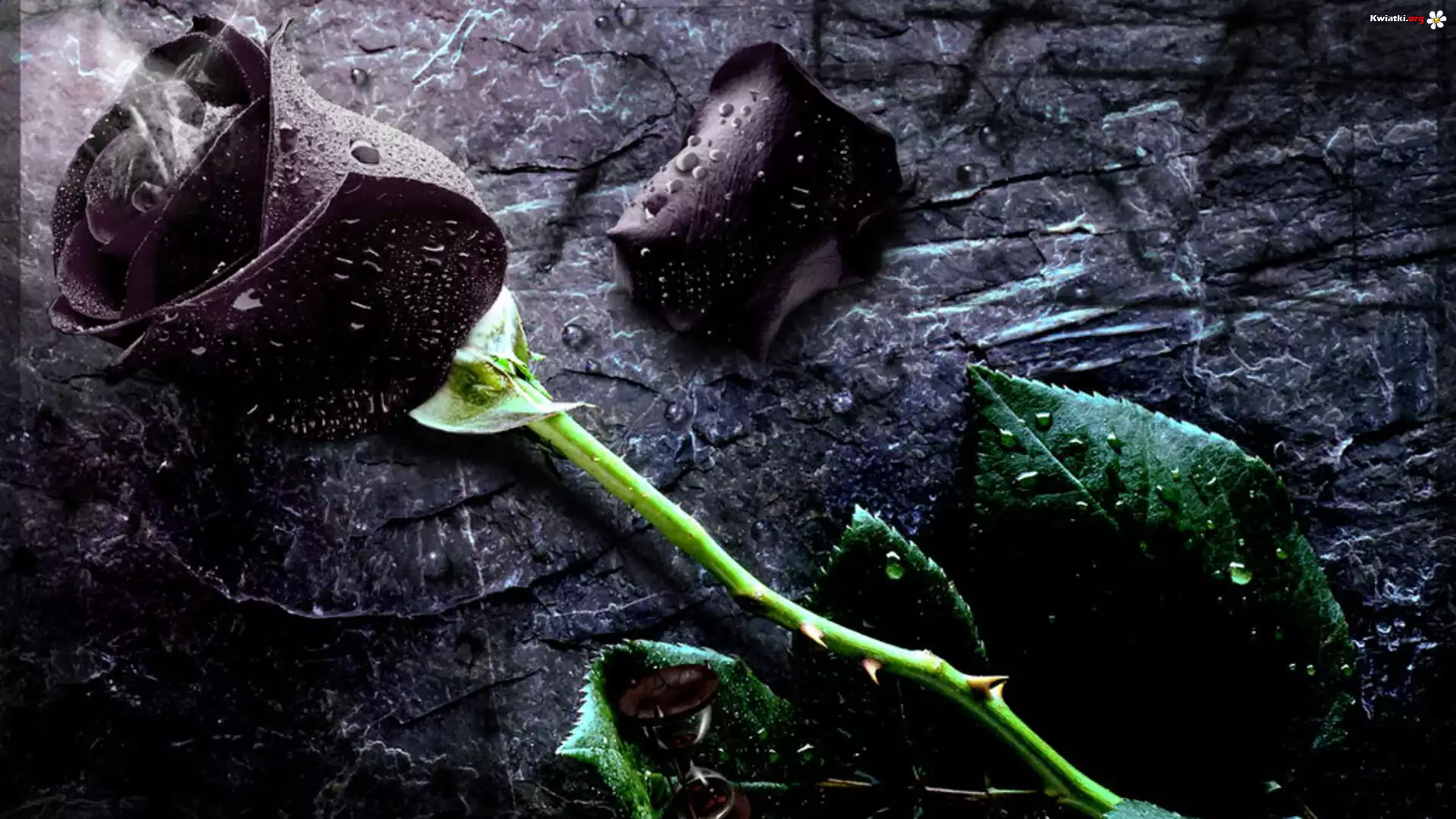 Kwiat Bordowo, Brązowa, Róża, Krople, Wody