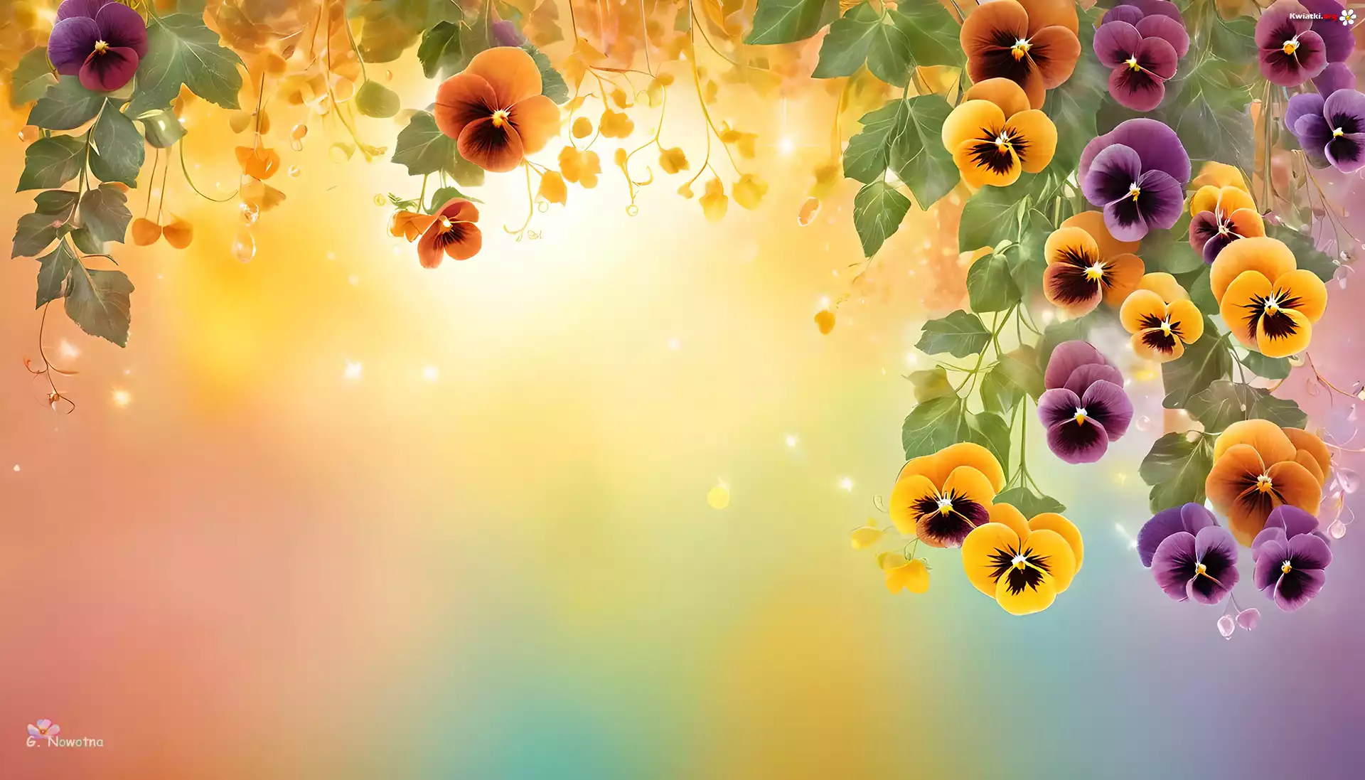Wiszące, Bratki, Kwiaty, Liście, Grafika - Zdjęcia