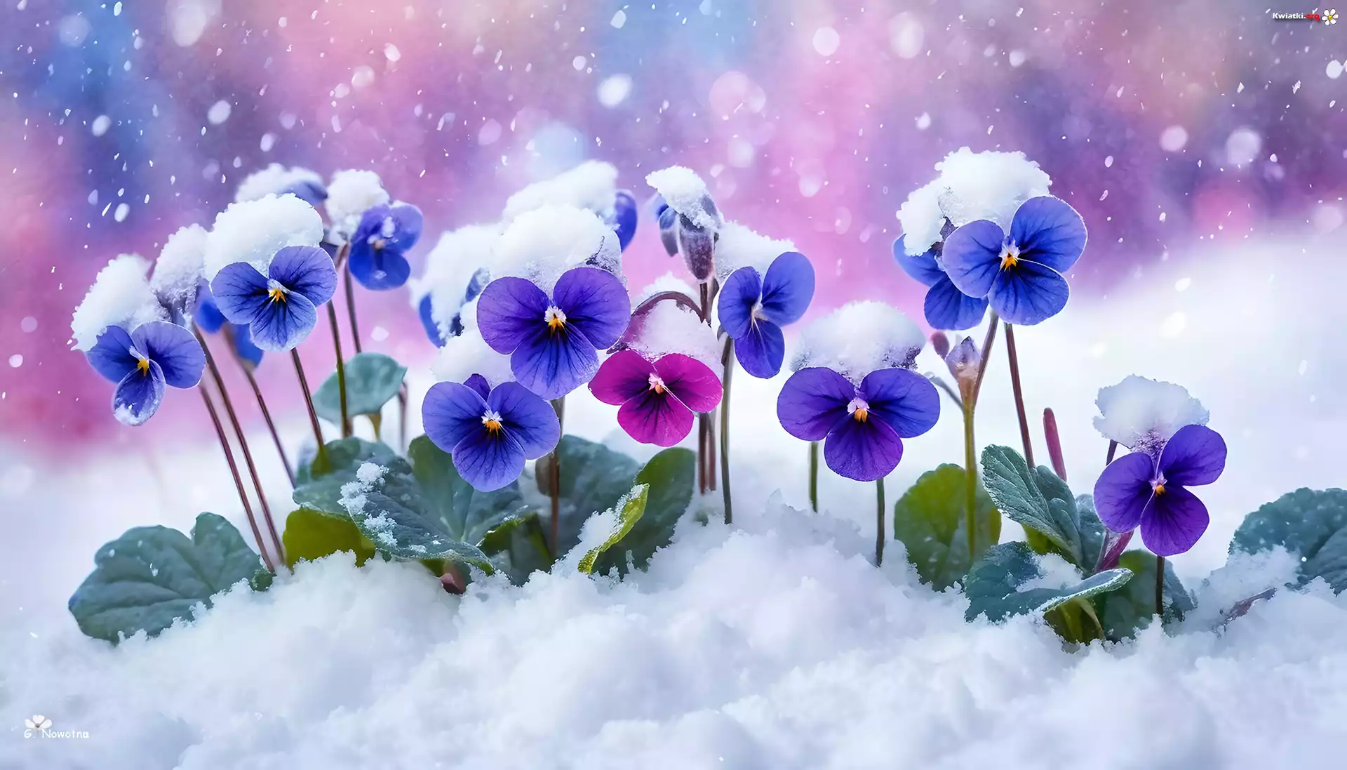 Bratki, Kwiaty, Śnieg - Zdjęcia