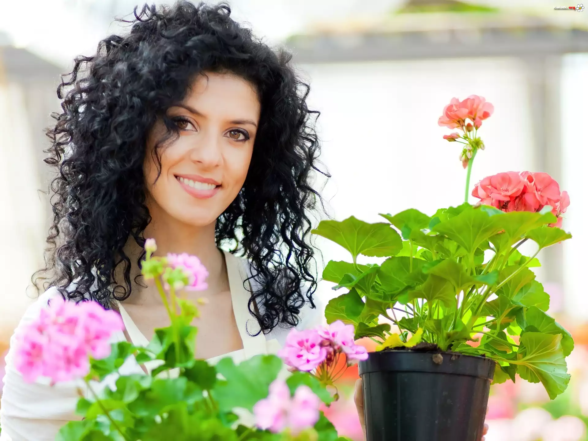 Piękna, Brunetka, Kwiaty - Zdjęcia