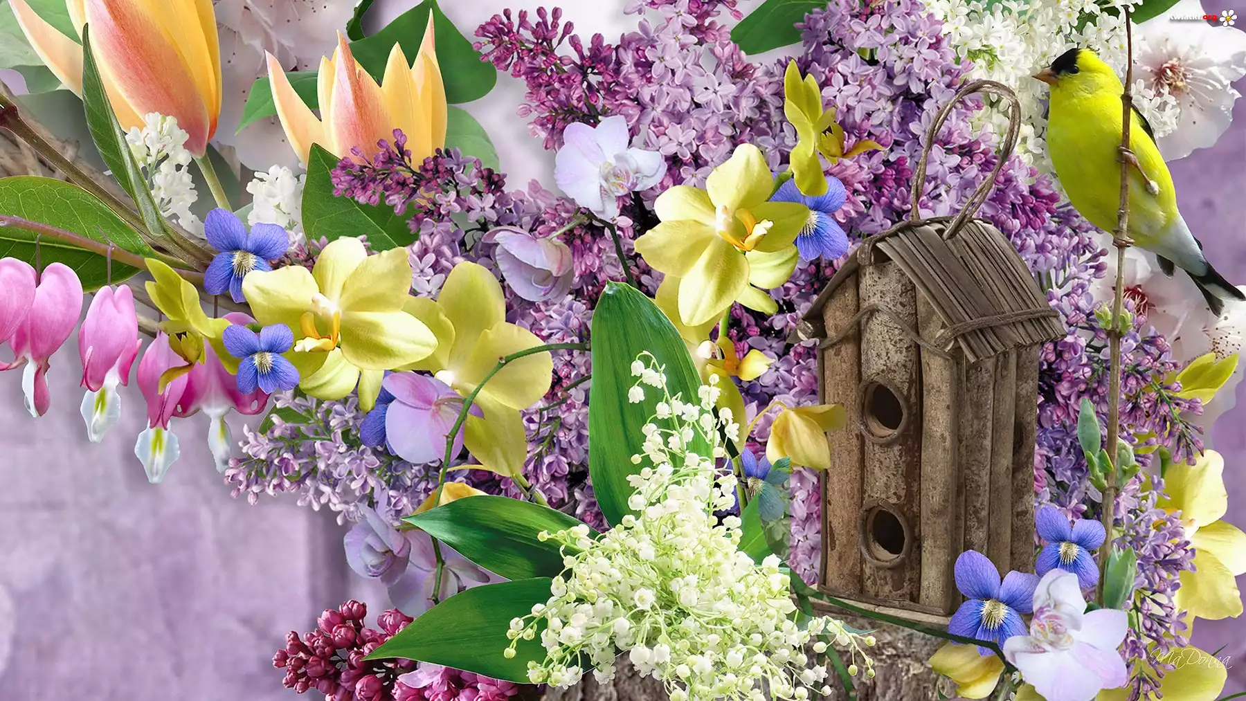 Kwiat Czyżyk, Czyż, Budka, Karmnik, Kwiaty, Storczyki, Konwalie, Tulipany, Bez