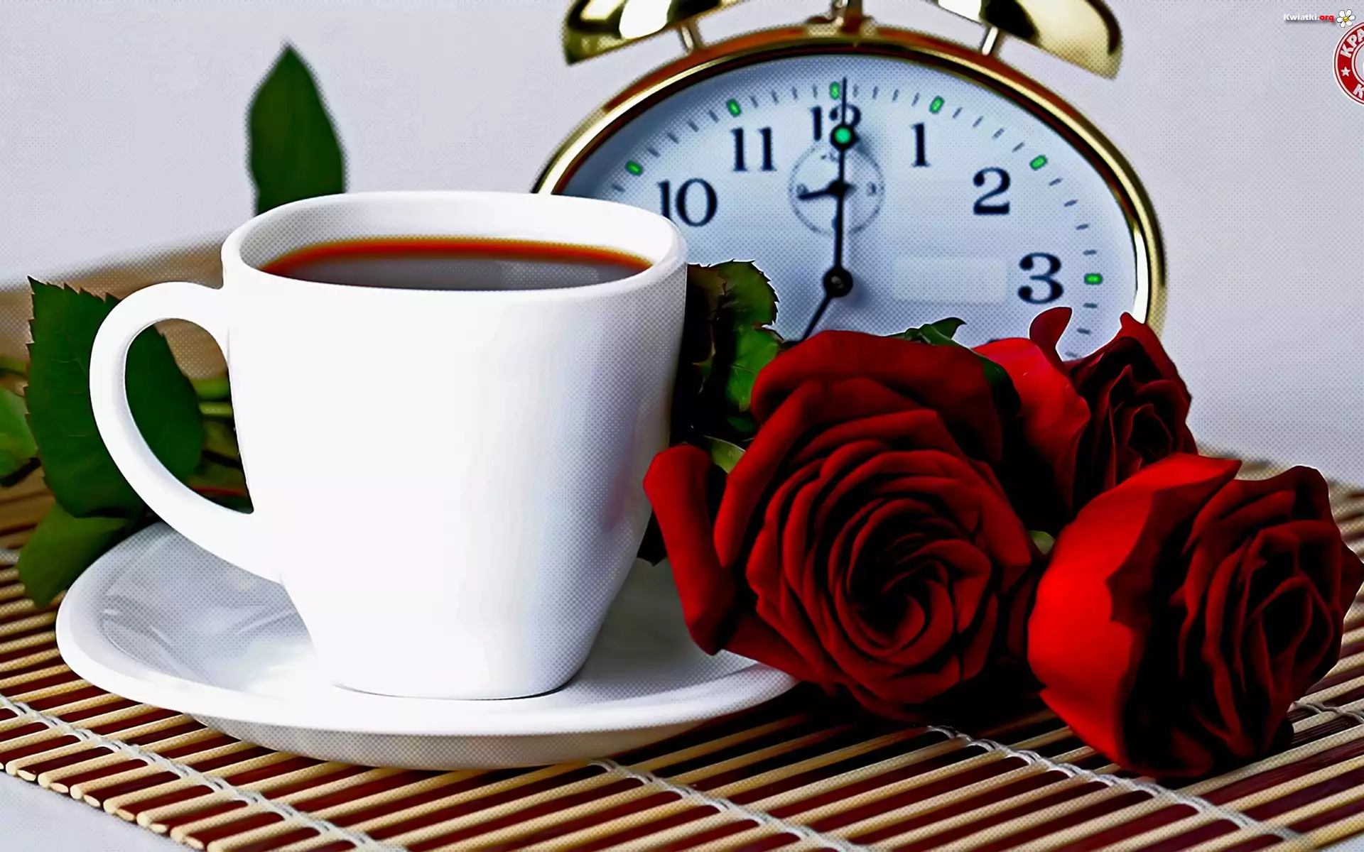 Budzik, Filiżanka, Czerwone, Róże - Zdjęcia
