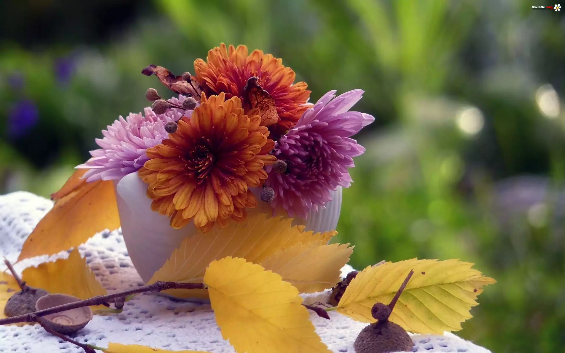 Bukiecik, Chryzantem, Gałązka, Jesień - Zdjęcia