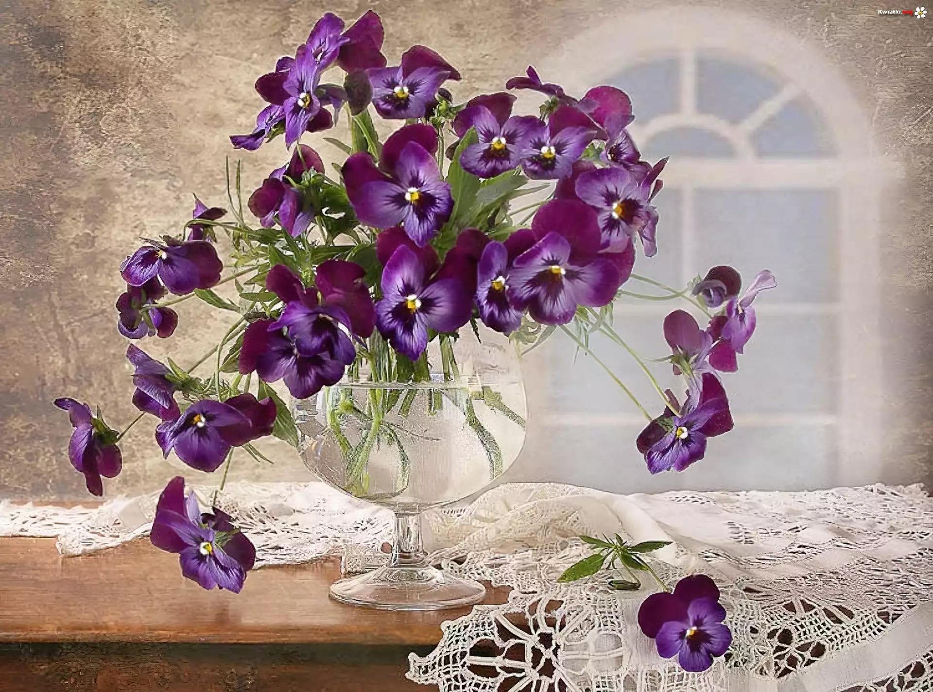 Bukiecik, Bratków, Ręcznie, Robiona, Serwetka - Zdjęcia