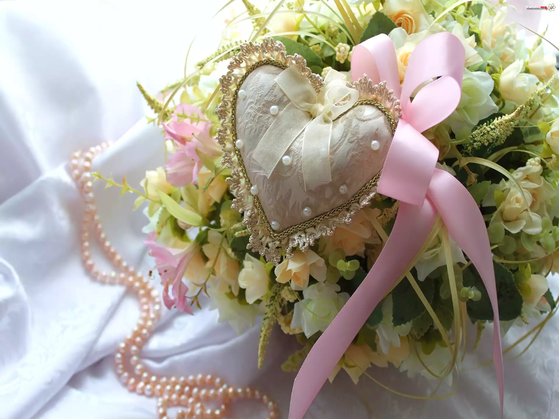 Bukiecik, Kwiatów, Perły, Serduszko, Wstążka - Zdjęcia