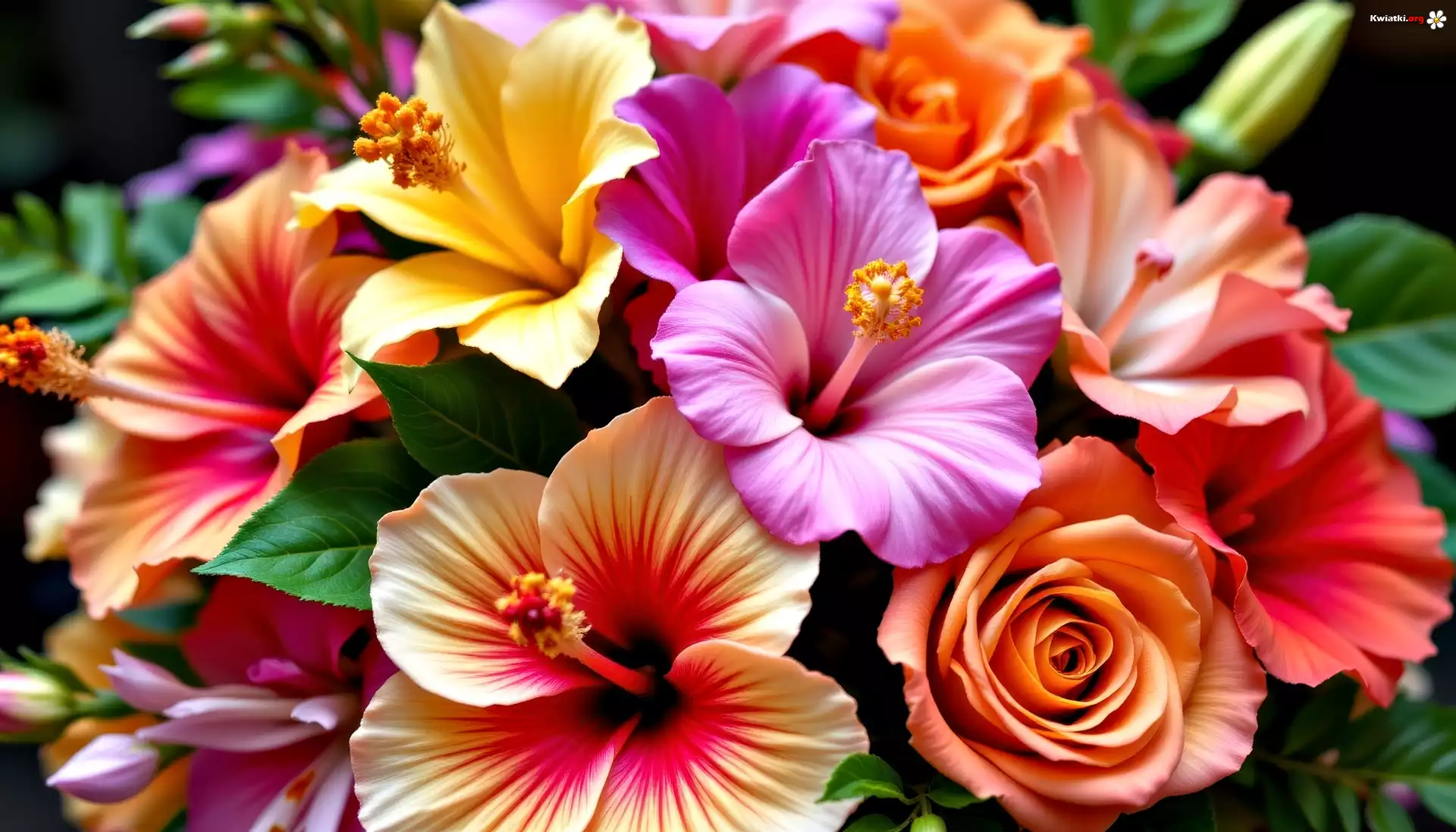 Hibiskusy, Róże, Kwiaty, Bukiet, Grafika AI - Zdjęcia