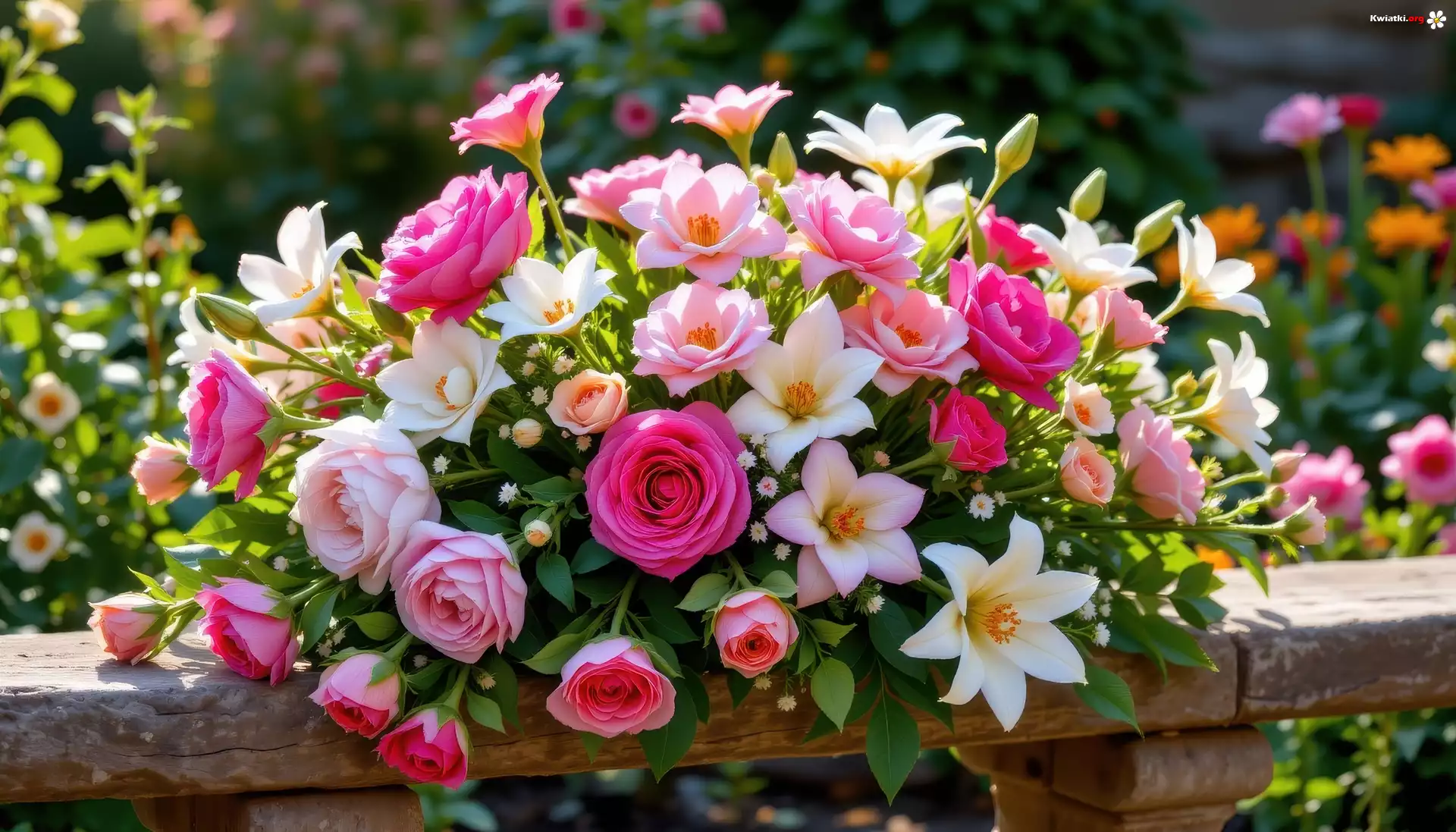 Kwiaty, Róże, Lilie, Bukiet, Grafika AI - Zdjęcia