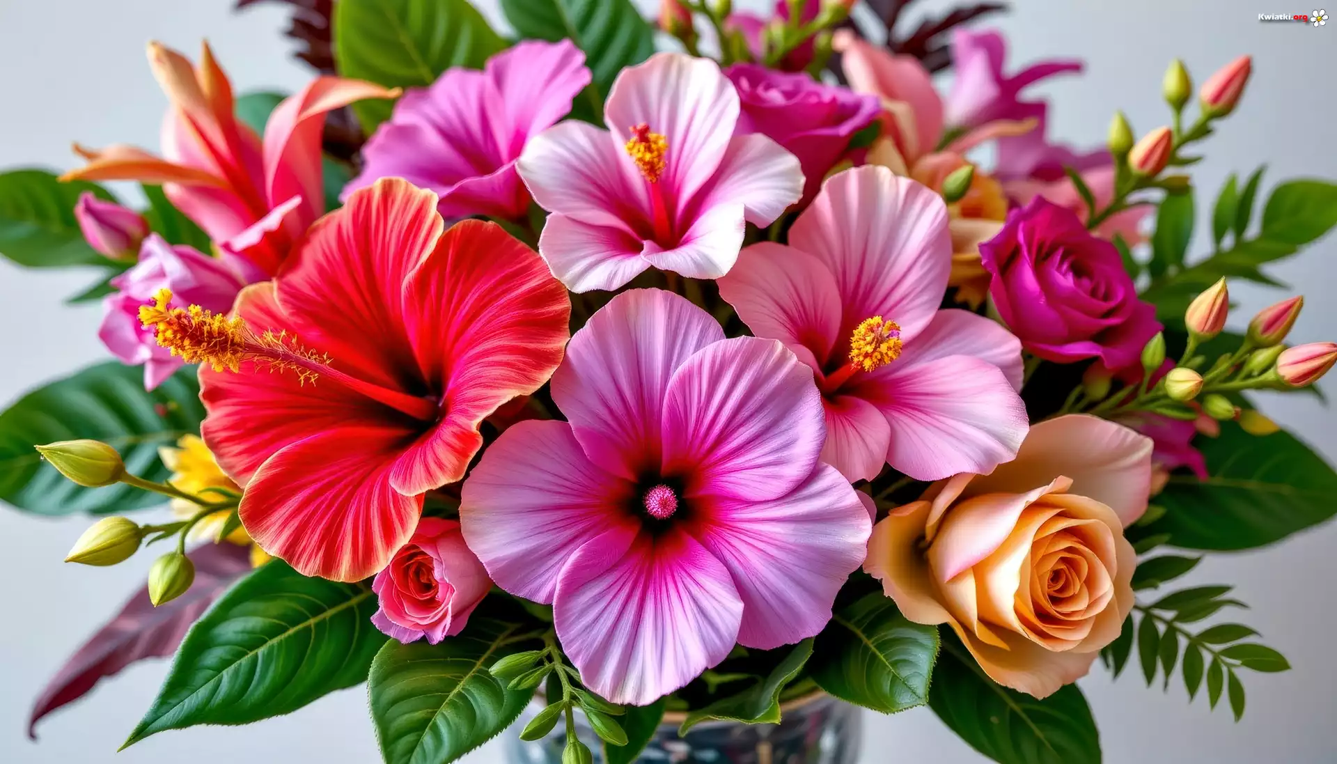 Kwiat Kwiaty, Hibiskusy, Róże, Bukiet, Grafika AI