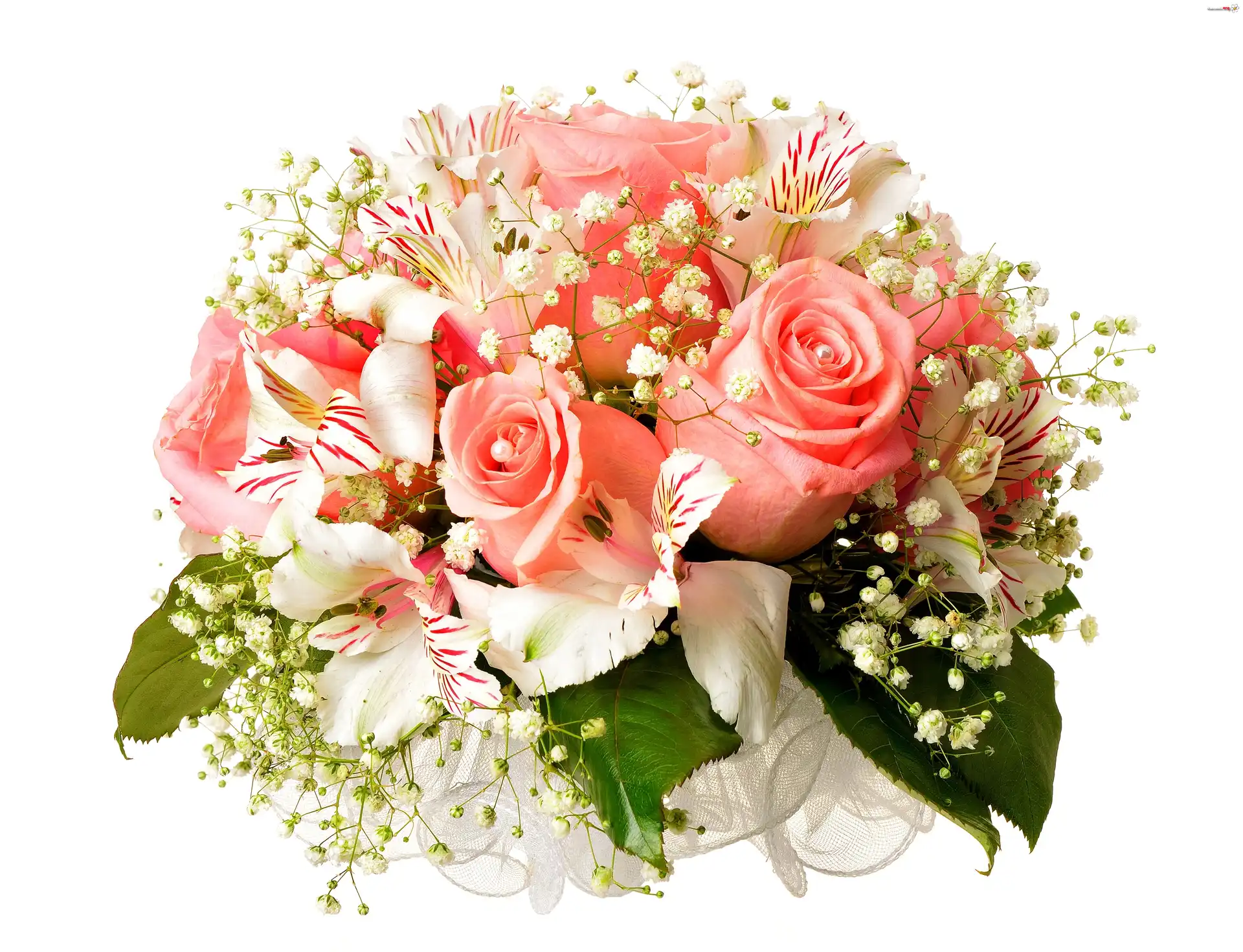 Bukiet, Róże, Alstremerie, Gipsówka - Zdjęcia