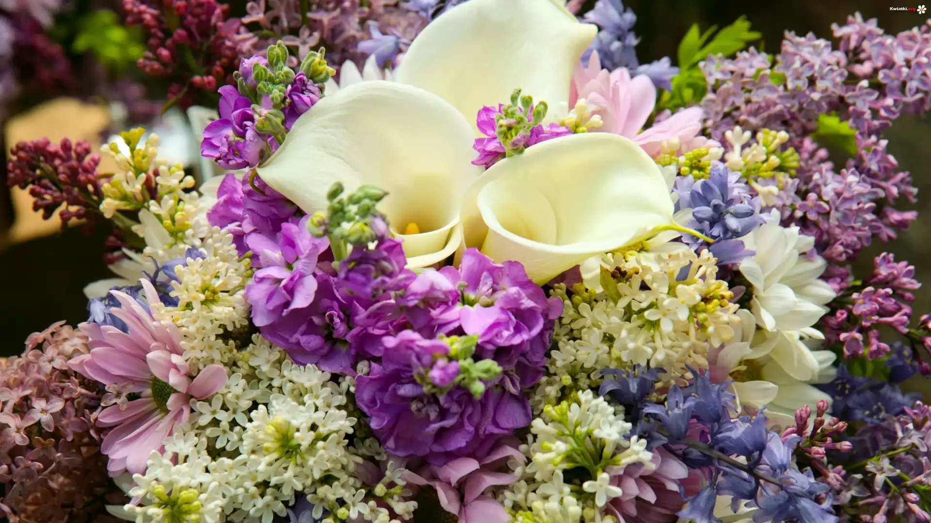 Bukiet kwiatów, Kalia, Bez, Gerbery - Zdjęcia