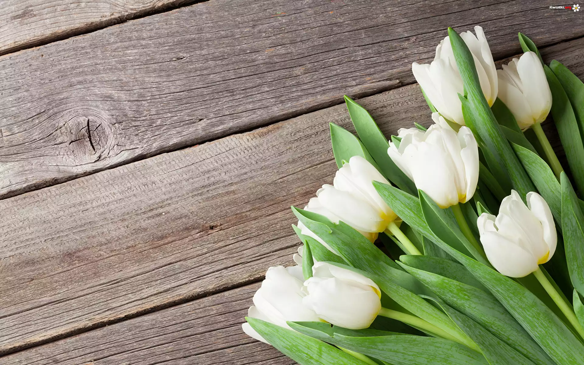Kwiat Kwiaty, Bukiet, Białe, Tulipany, Deski