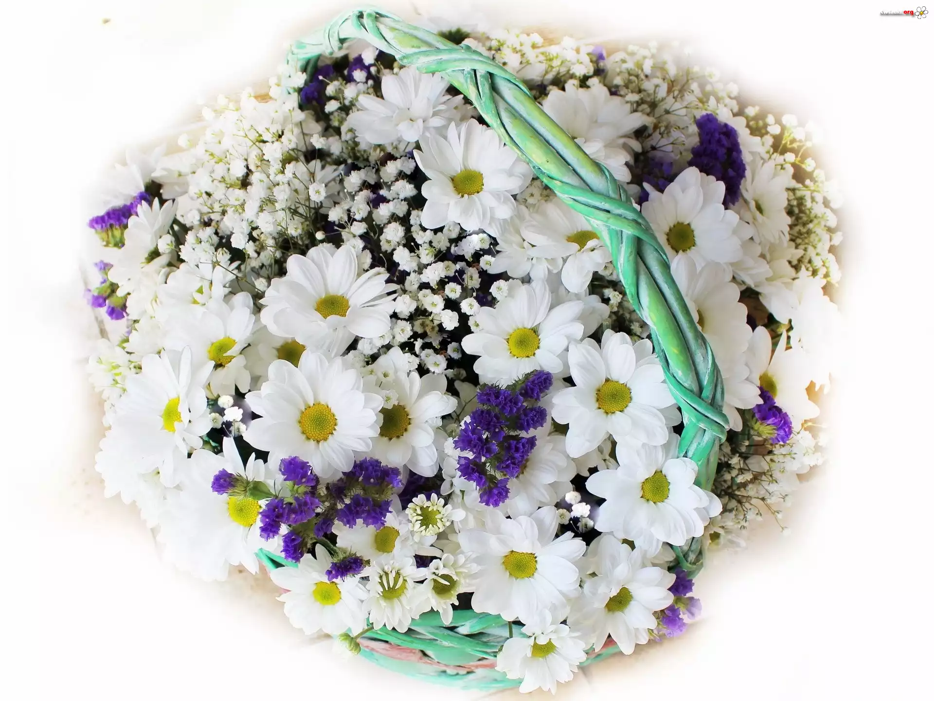 Kwiat Bukiet, Delikatnych, Białych, Margerytek