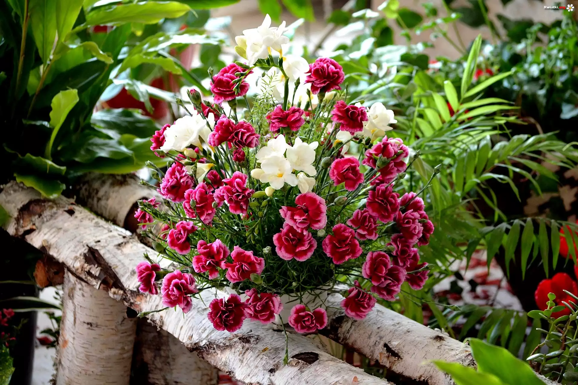 Bukiet, Kwiatów, Gozdzik Brodaty, Frezje - Zdjęcia