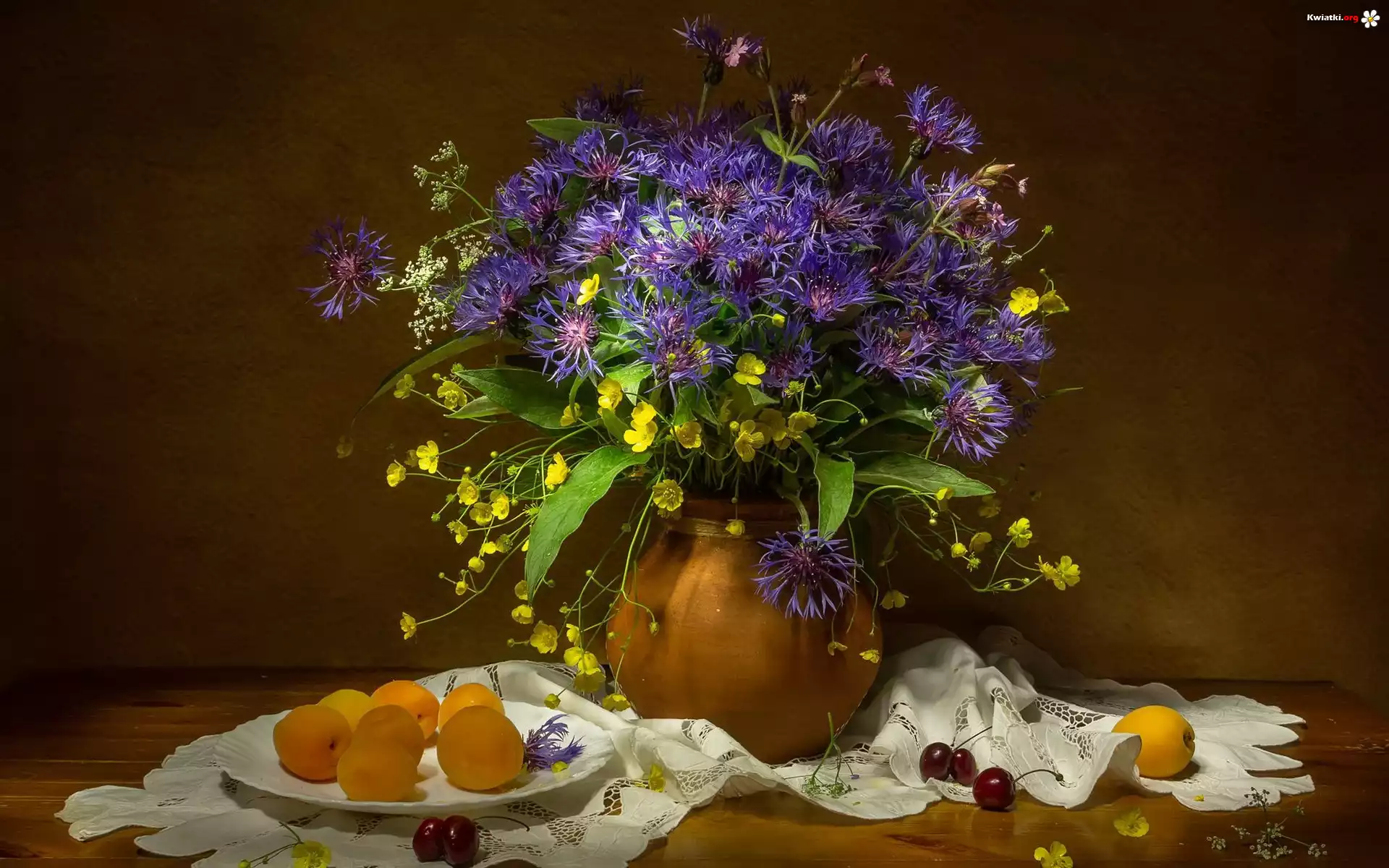 Kwiaty, Bukiet, Chabry, Wazon, Serweta - Zdjęcia