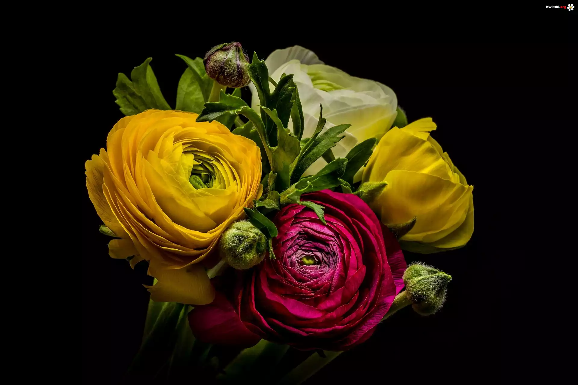 Kwiat Bukiet, Kwiaty, Jaskry, Ciemne tło