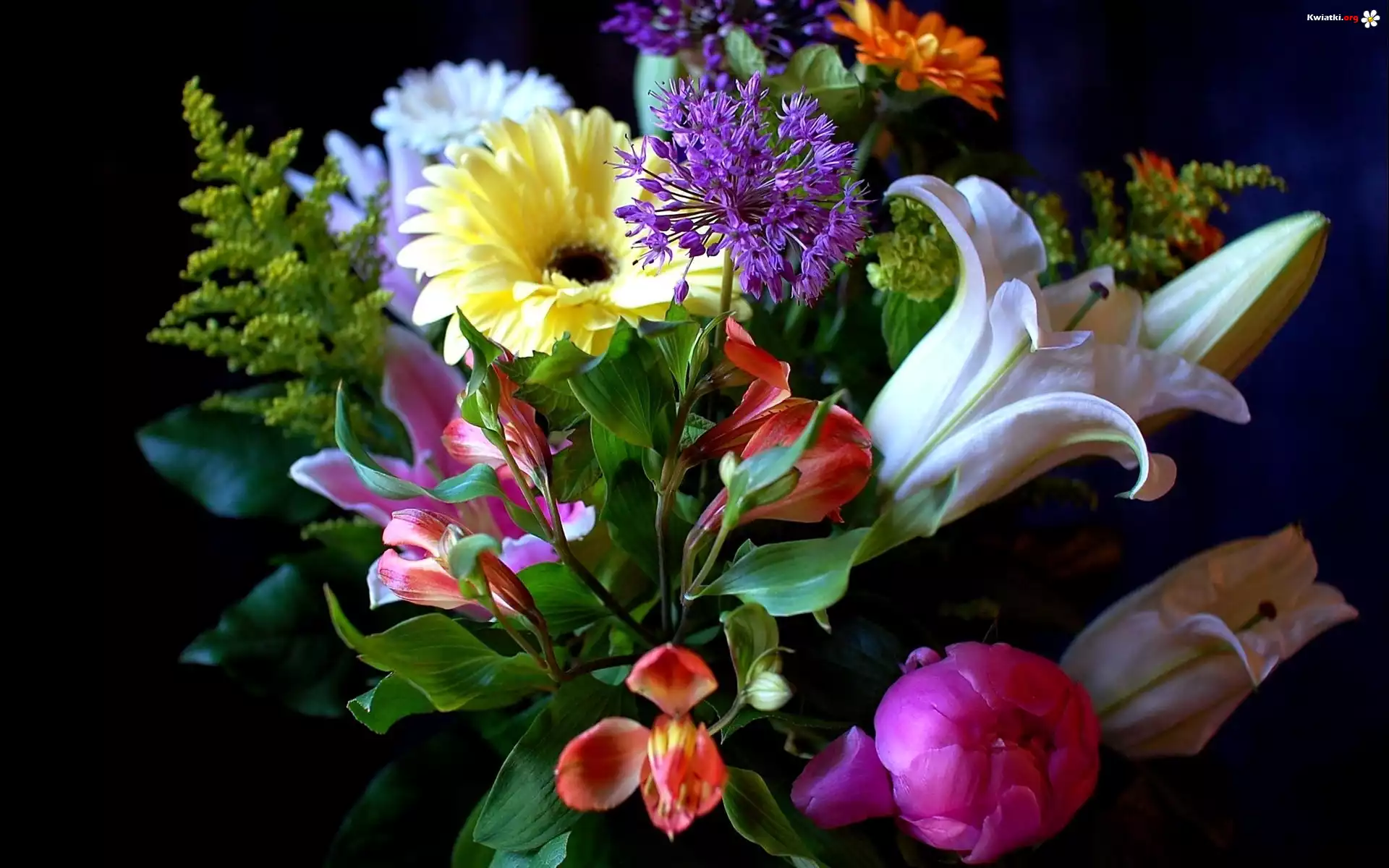 Bukiet, Kwiatów, Ciemne, Tło - Zdjęcia