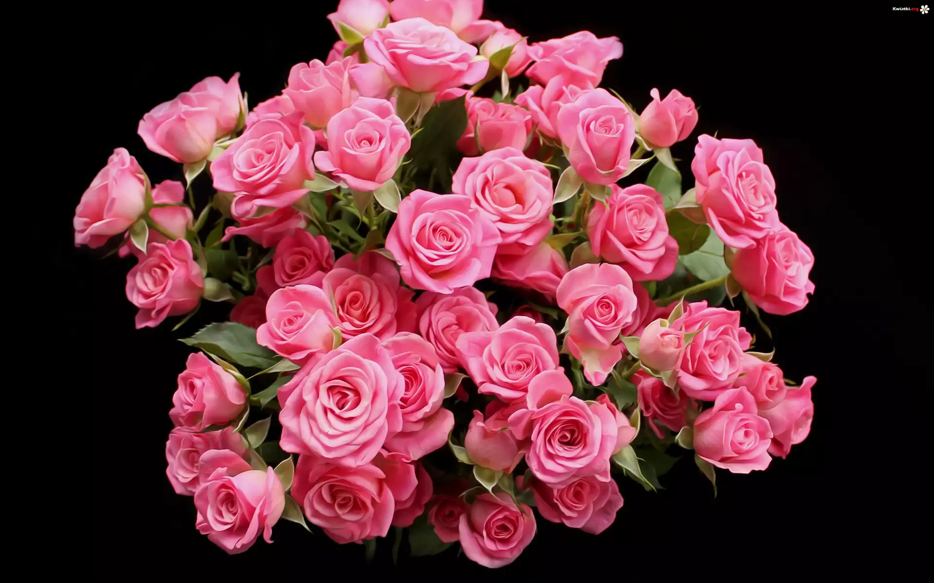 Kwiat Bukiet, Różowe, Róże, Ciemne tło