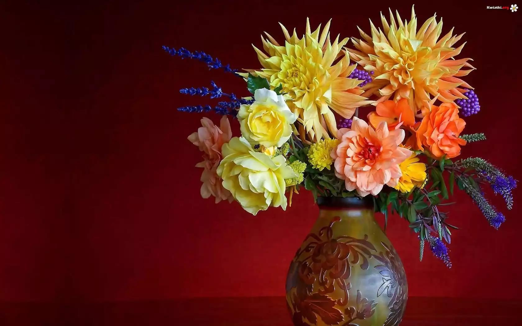 Bukiet, Kwiaty, Dalie, Róże - Zdjęcia