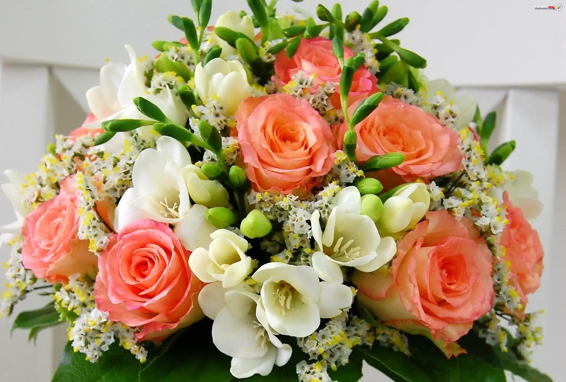 Bukiet, Pięknych, Kwiatów, Frezje, Róże - Zdjęcia