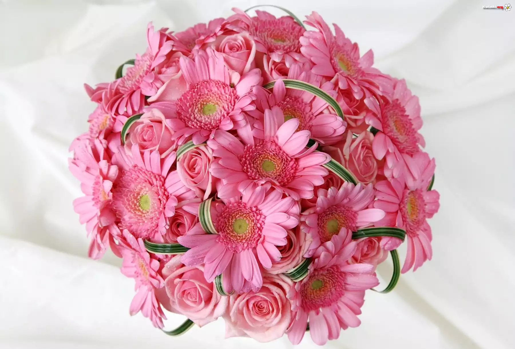Bukiet, Różowych, Gerberów, Róż - Zdjęcia