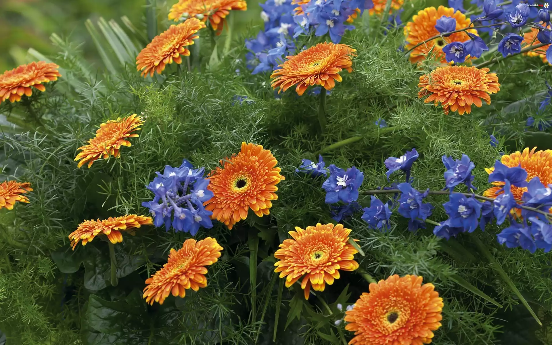 Bukiet, Kwiatów, Gerbery, Asparagus - Zdjęcia