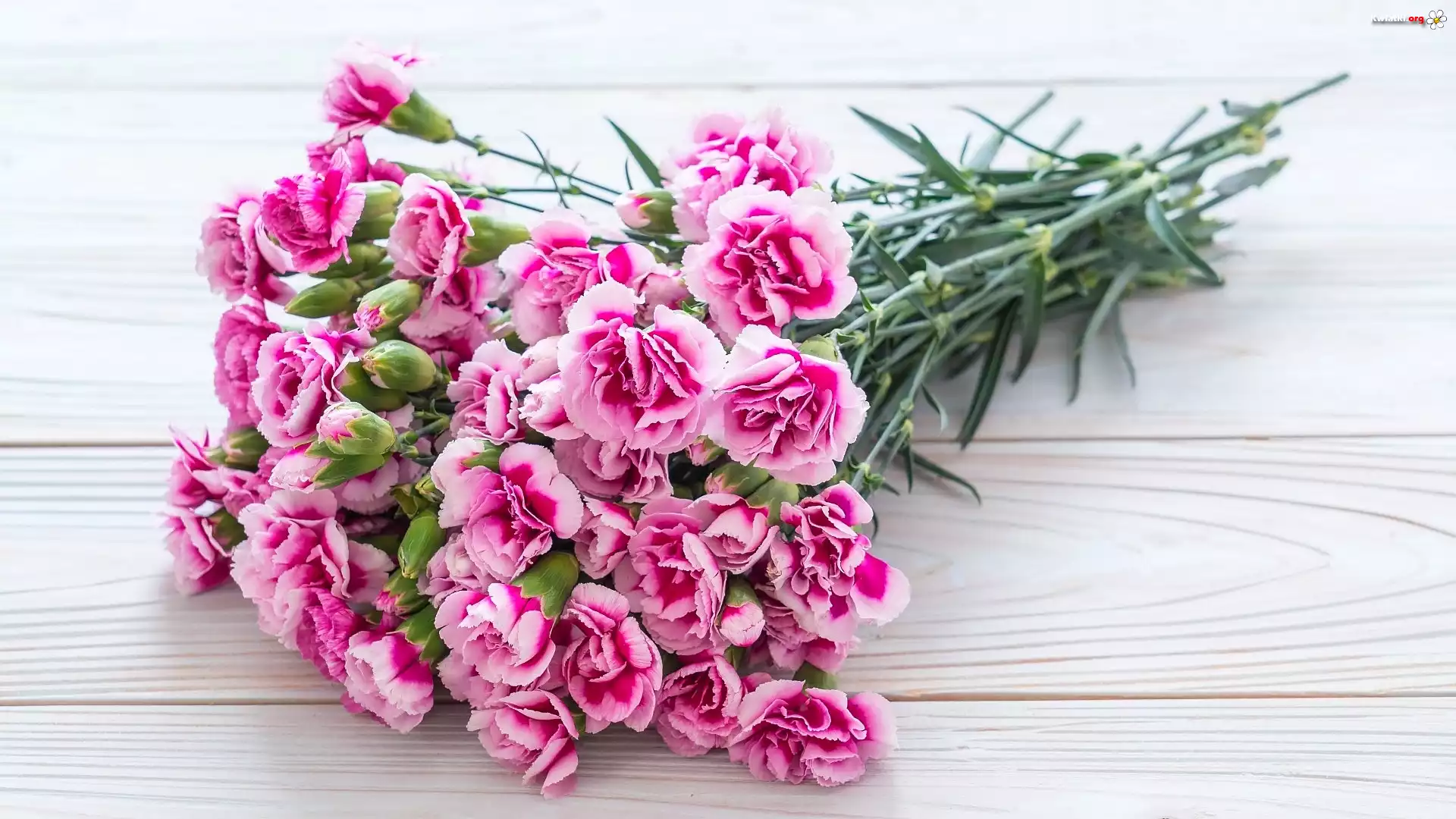 Bukiet, Kwiatów, Różowe, Goździki, Deski - Zdjęcia