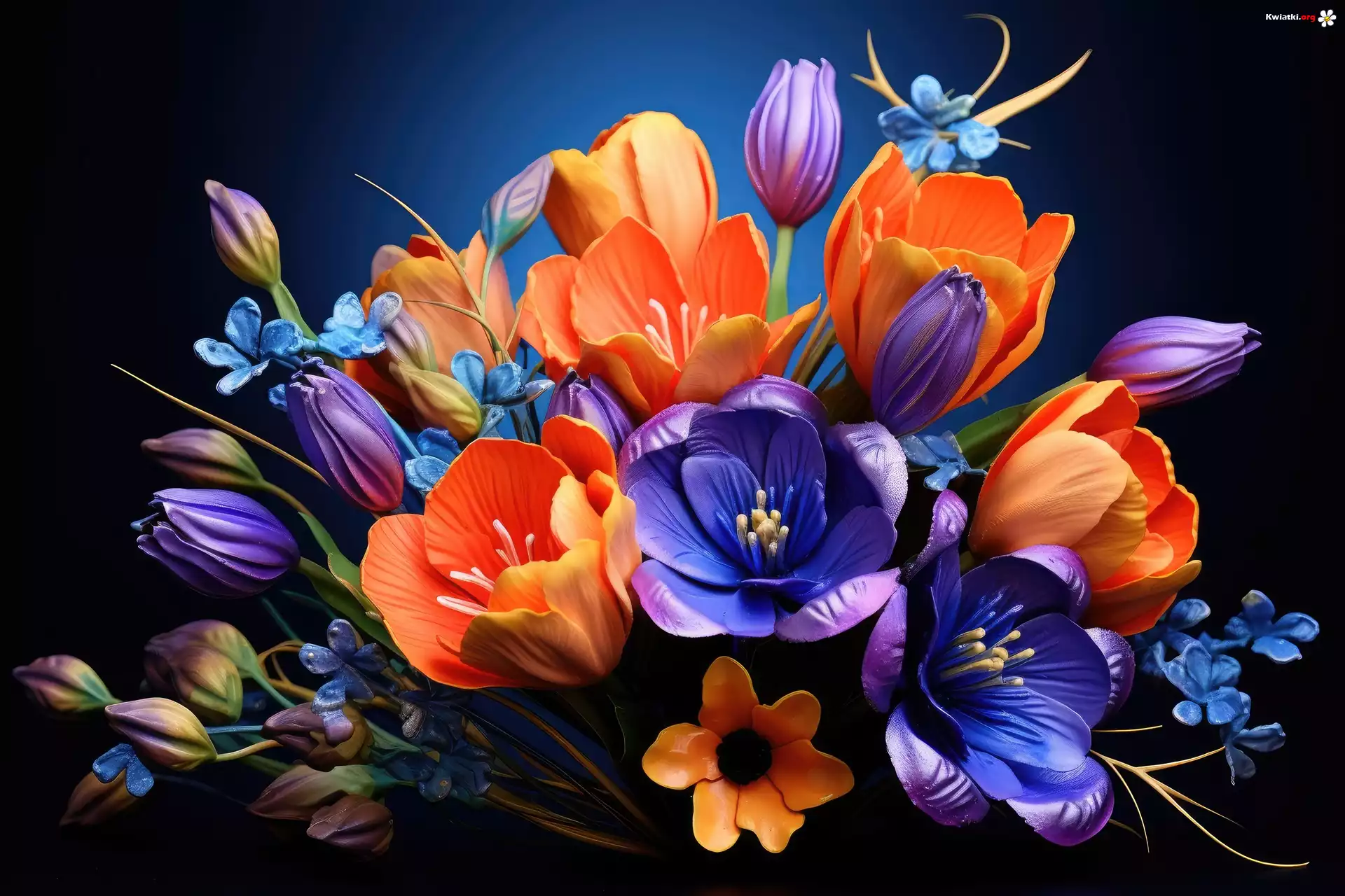 Pomarańczowe, Fioletowe, Kwiaty, Bukiet, Kompozycja, Grafika - Zdjęcia