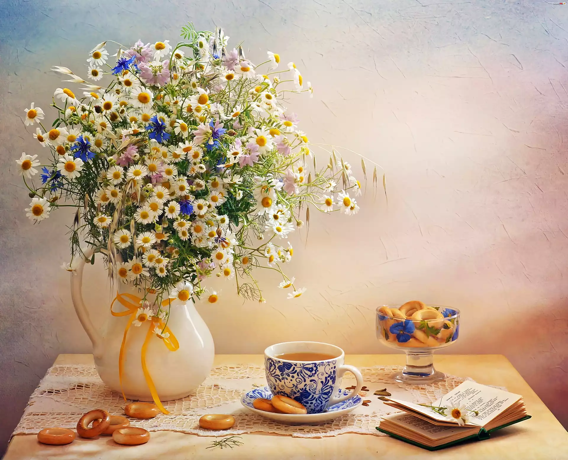 Kwiat Bukiet, Kwiatów, Herbata, Ciasteczka