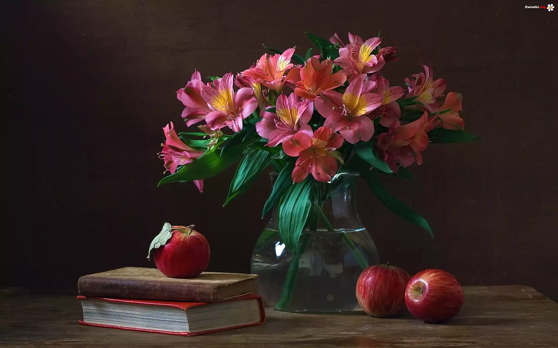 Kwiat Bukiet, Różowych, Kwiatów, Jabłka, Książki