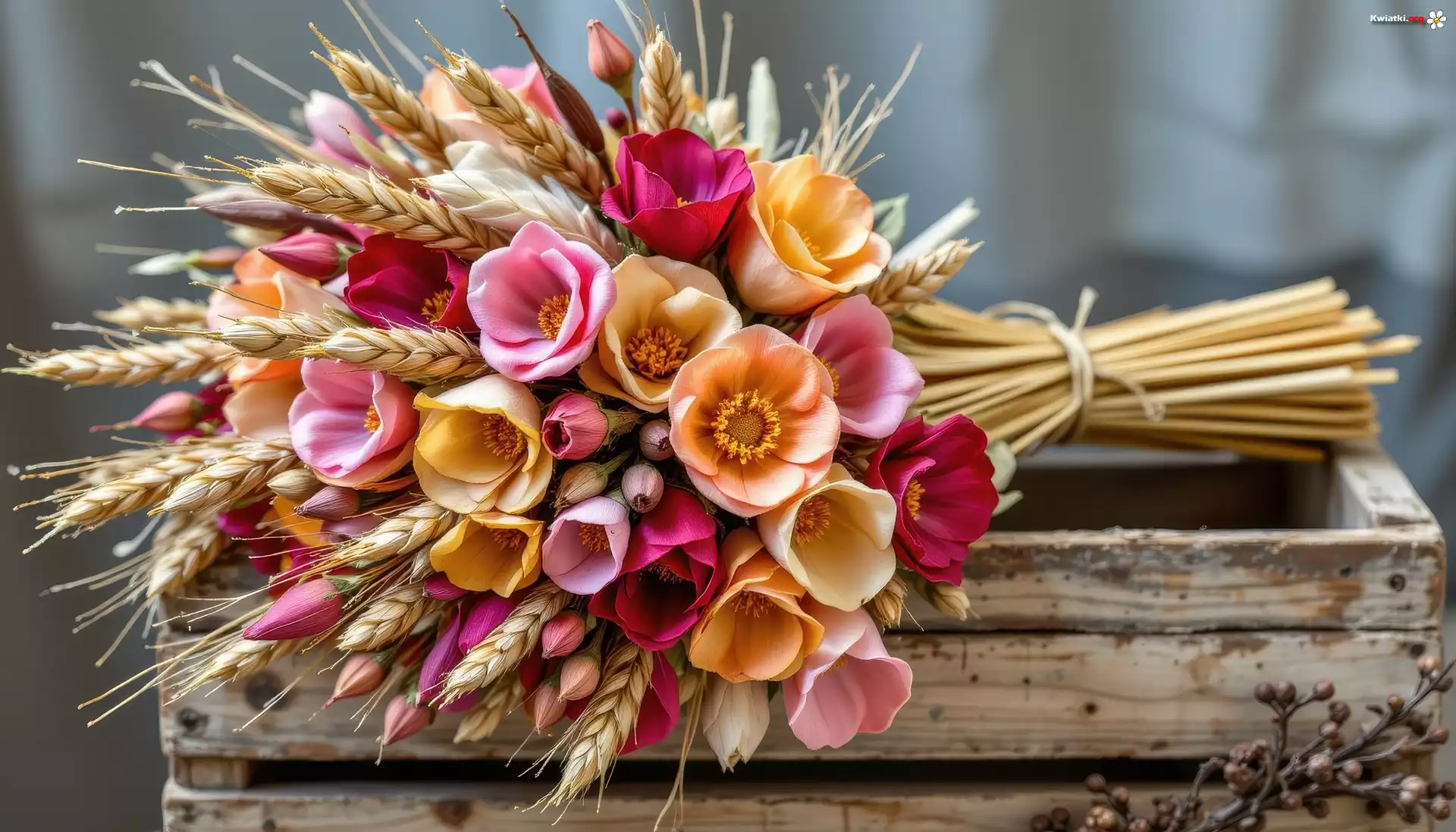 Kwiaty, Zboże, Kłosy, Bukiet, Skrzynka, Grafika AI - Zdjęcia