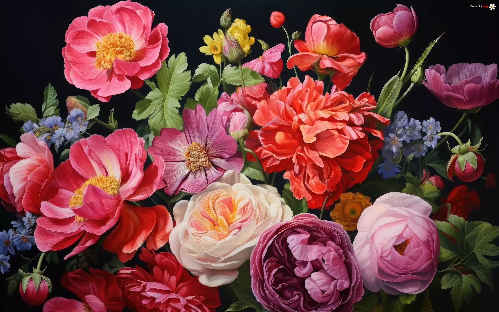 Kwiaty, Bukiet, Kolorowe, Piwonie, Grafika - Zdjęcia