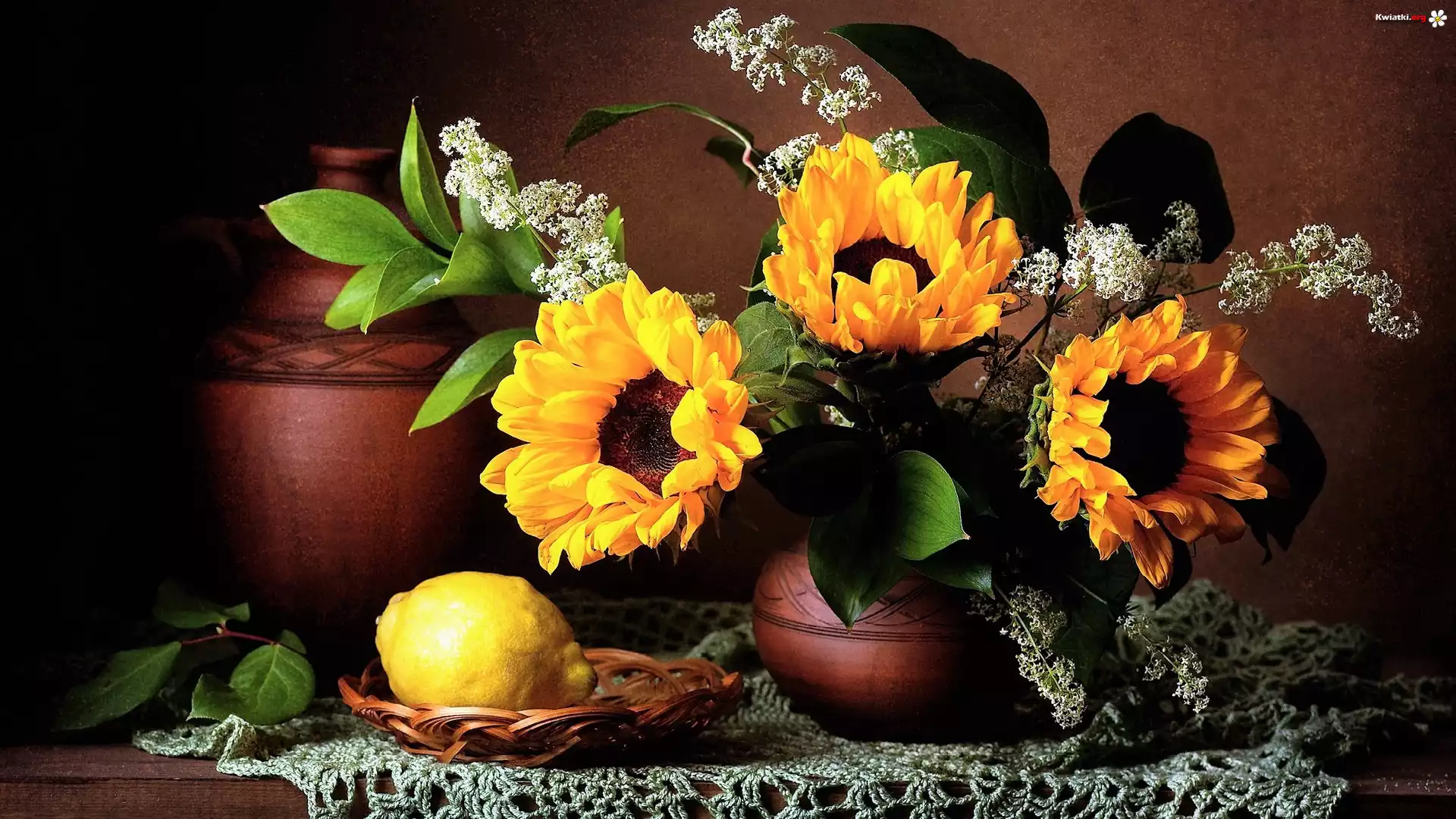 Kompozycja, Bukiet kwiatów, Słoneczniki, Wazon, Koszyczek, Dzban - Zdjęcia