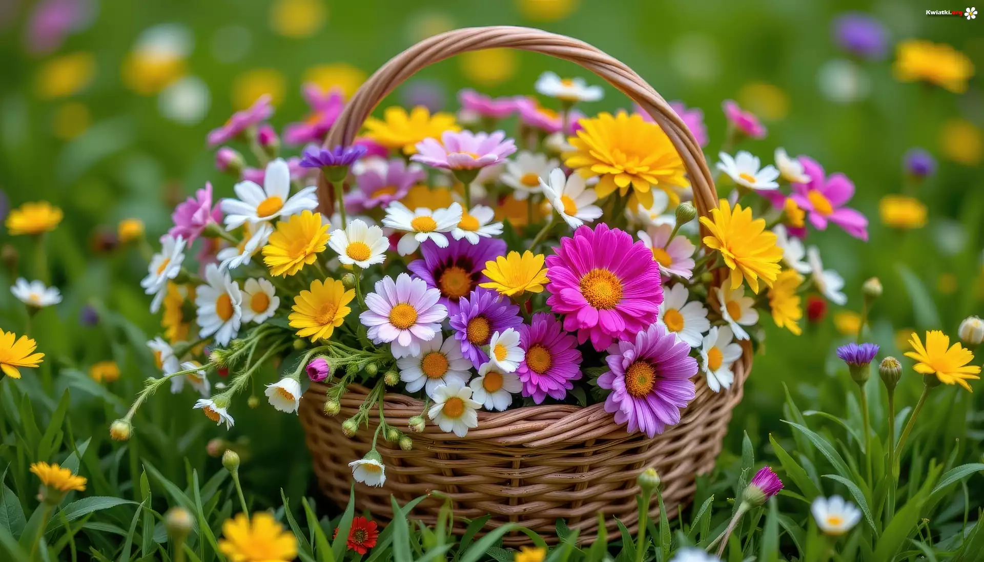 Kolorowe, Polne, Kwiaty, Bukiet, Wiklinowy, Koszyk - Zdjęcia