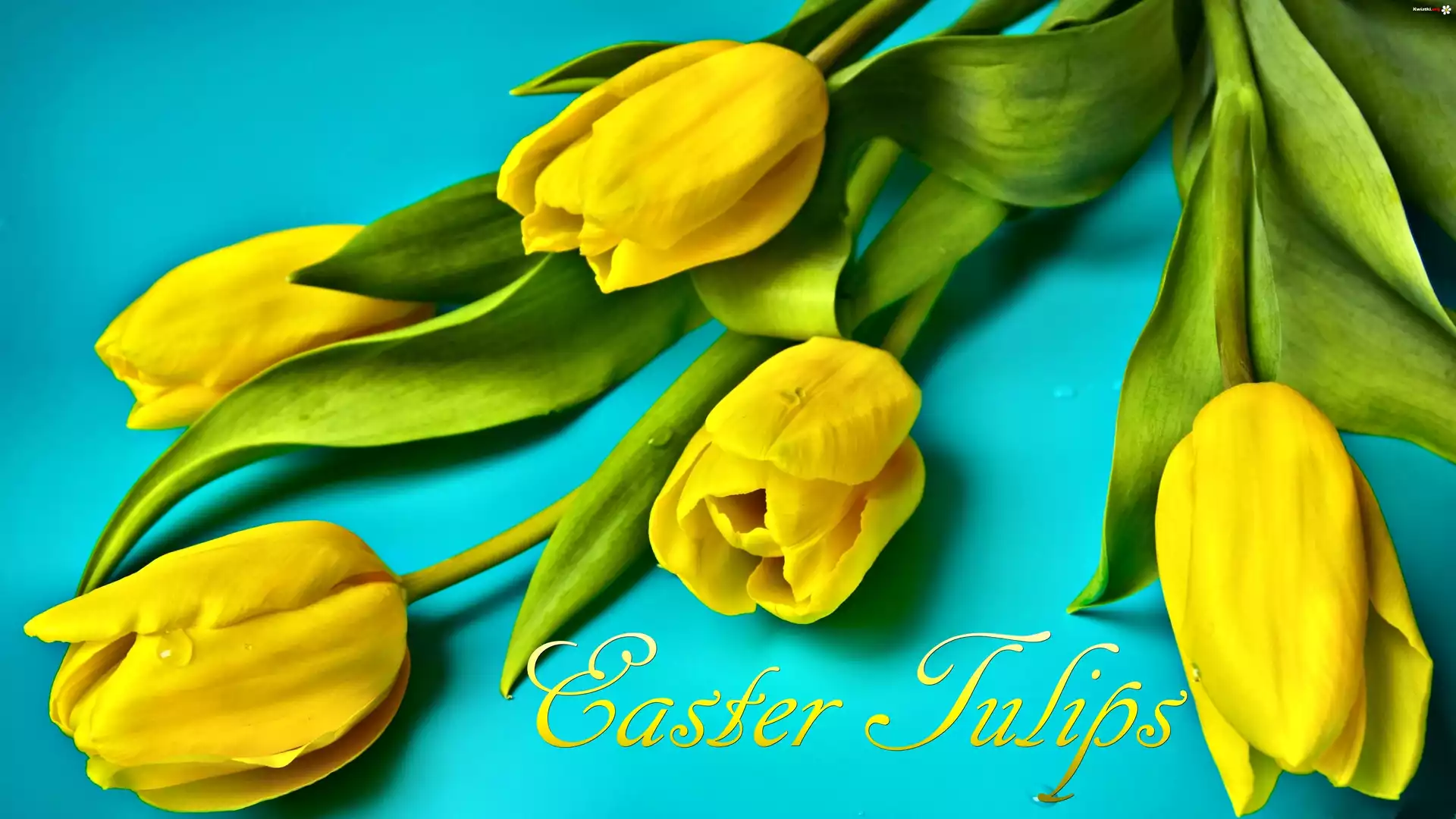 Kwiat Bukiet, Żółtych, Tulipanów, Krople, Deszczu