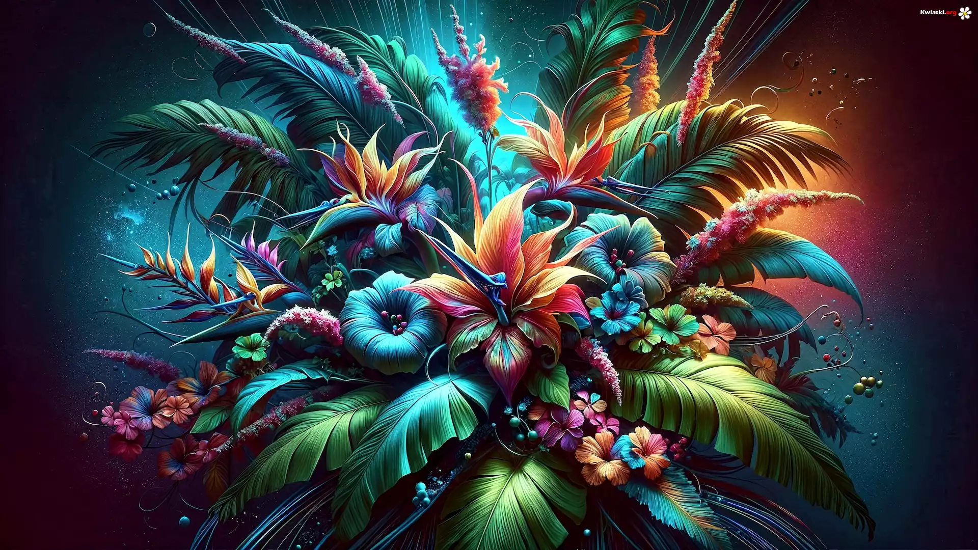 Kwiat Grafika, Bukiet kwiatów, Egzotyczne, Liście