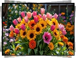 Kwiaty, Tulipany, Słoneczniki, Bukiet - Zdjęcia