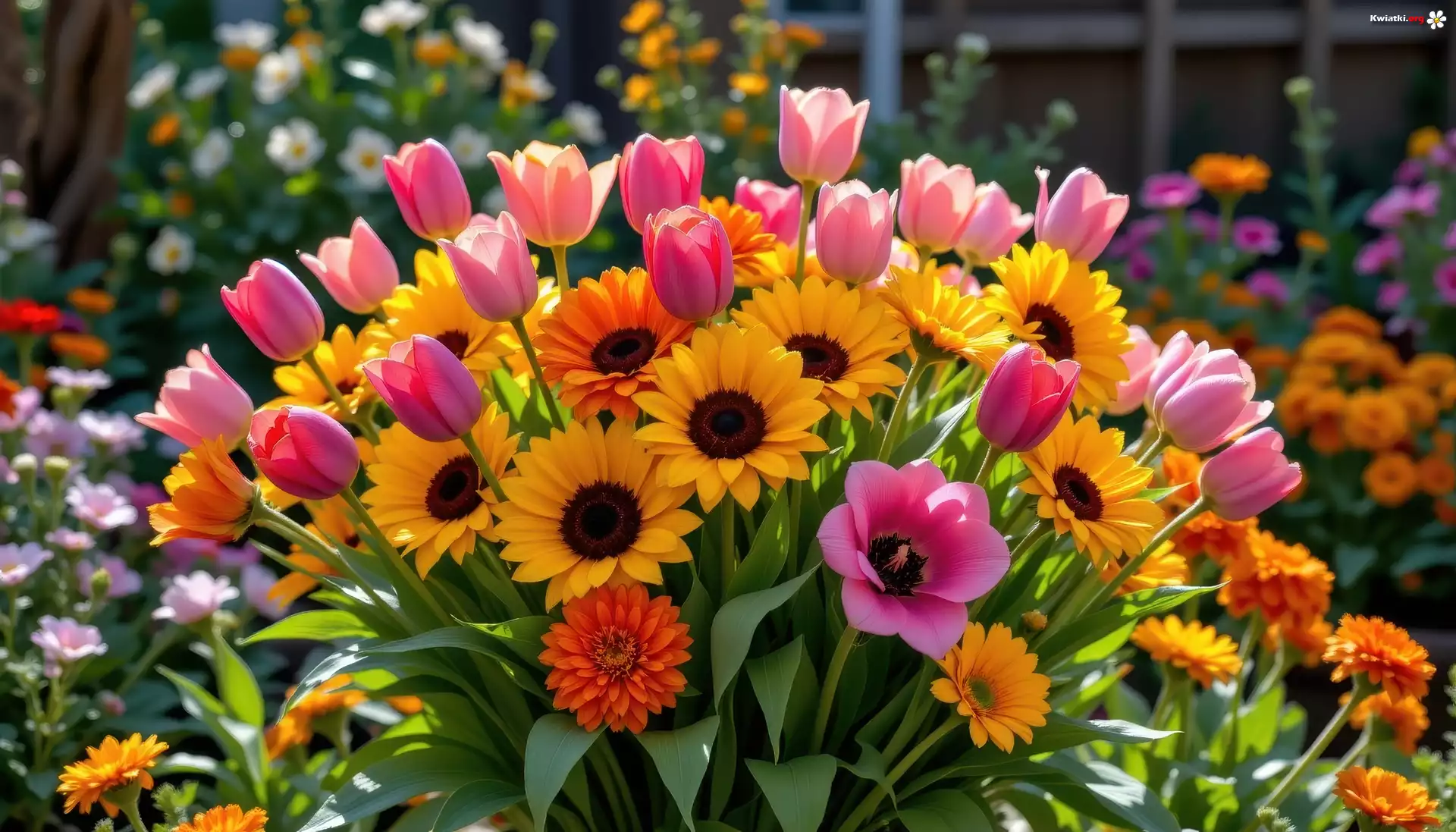 Kwiat Kwiaty, Tulipany, Słoneczniki, Bukiet
