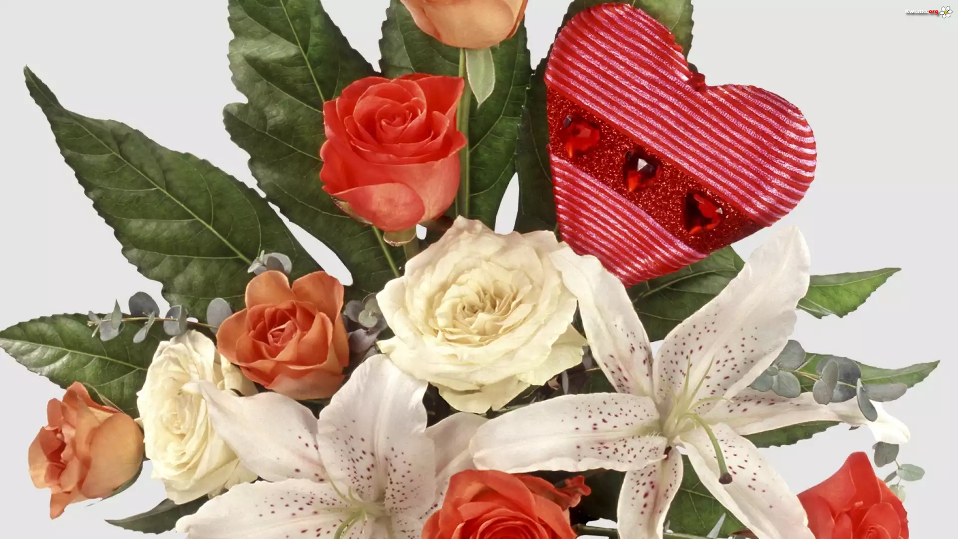 Bukiet, Kwiatów, Róże, Lilie, Serce - Zdjęcia
